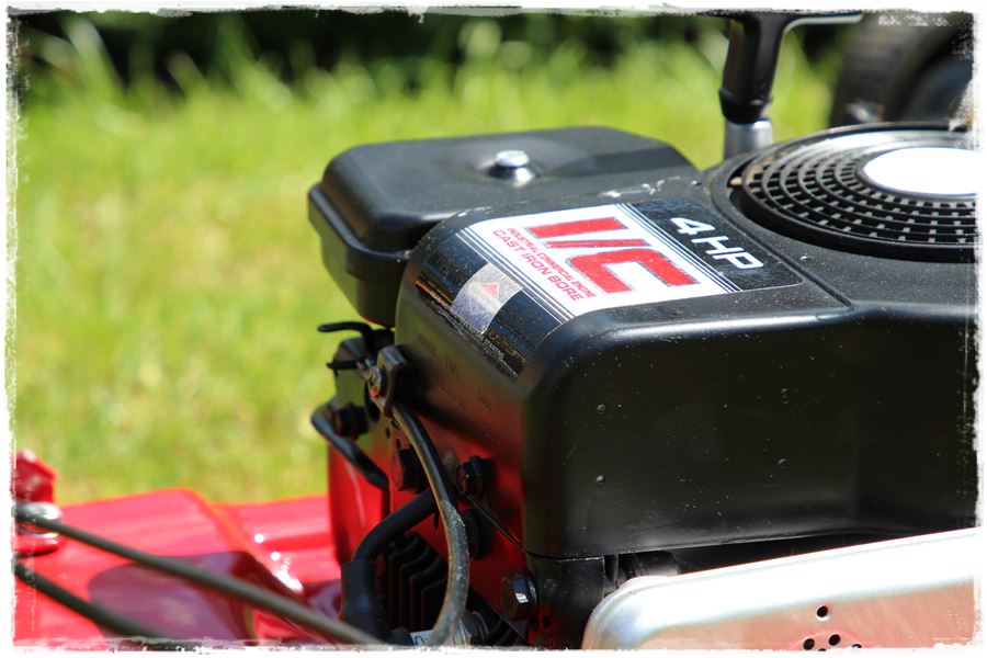 Silnik, który znajduje się w tej retro kosiarce to silnik dolnozaworowy, model 9. Tych silników Briggs & Stratton sprzedał na całym świecie, od połowy lat 50-tych do 2012 roku, imponującą ilość 150 mln sztuk. Takim wynikiem nie może pochwalić się żadna inna firma na świecie, tym bardziej, że silnik ten miał opatentowany (jako pierwszy na świecie silnik do kosiarki) jednorodny aluminiowy cylinder odlany z kadłubem silnika. Dzięki tej technologii silniki stały się lżejsze, co było przełomowym momentem, gdyż wcześniej były odlewane z ciężkiego żeliwa. Od teraz silniki mogły być stosowane w kosiarkach do koszenia przydomowych ogrodów, tym samym rozpoczęła się era samodzielnego koszenia trawników.
