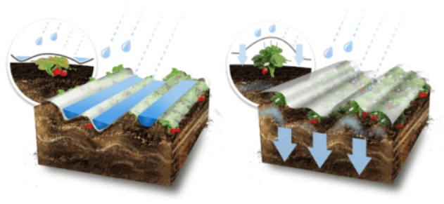 Natomiast jeśli dalej jeszcze nie jesteś przekonany i myślisz sobie, a co to takiego, to wyobraź sobie taką sytuację: masz okryte młode uprawy i panuje susza, mniej więcej podobna jak tej wiosny. Co musisz robić? Podlewać rośliny. I teraz jeśli masz okrycie z „normalnej” włókniny, musisz ją odsłaniać, czyli zdejmować zabezpieczenia, szpilki czy cokolwiek ją przytrzymuje. Następnie podlewasz i ponownie wszystko zabezpieczasz. Co tracisz? Czas i sporo nerwów.