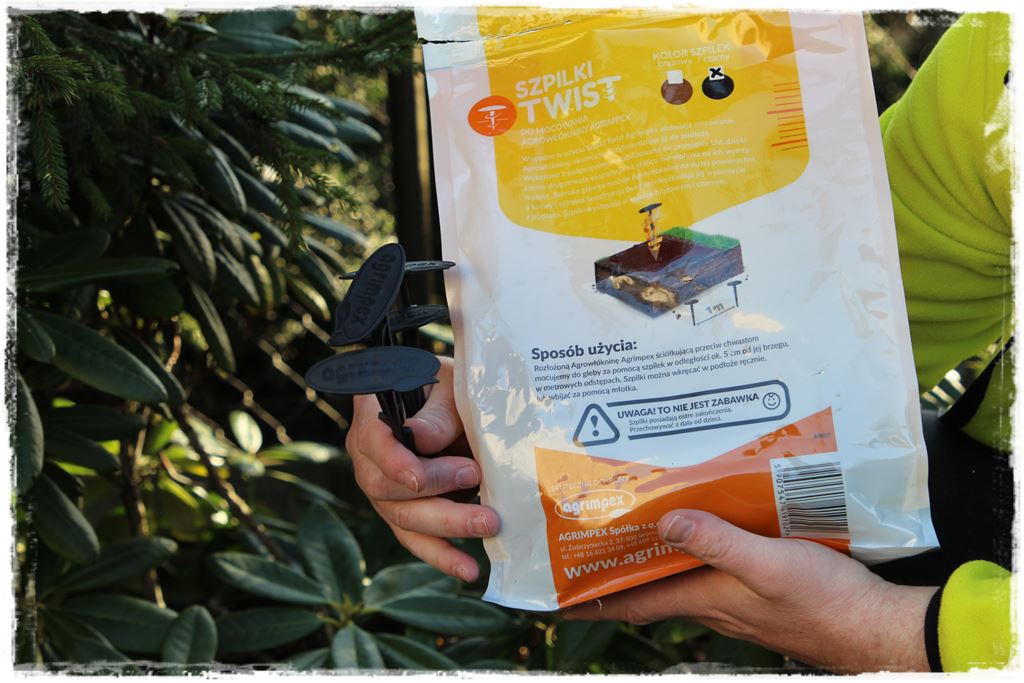 Zamocuj brzegi aby zabezpieczyć przed zerwaniem włókniny. Możesz to zrobić obsypując lekko ziemią lub kamieniami (kopczyki co około 1 metr), a jeszcze lepiej przymocowując dedykowanymi do tego szpilkami.