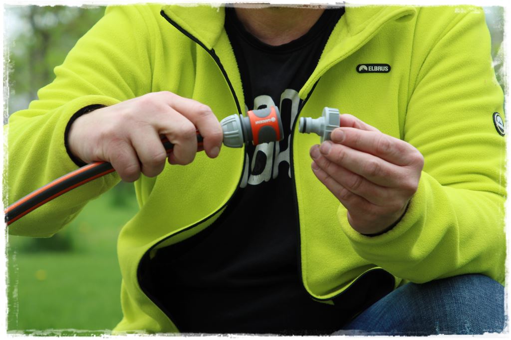 W węża oczywiście wpina się końcówkę (zraszacz lub pistolet), odpowiednią do tego, jaki rodzaj strumienia jest potrzebny.
