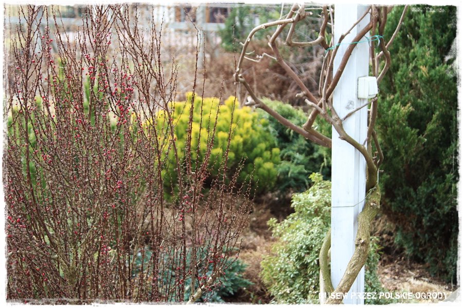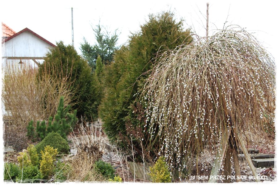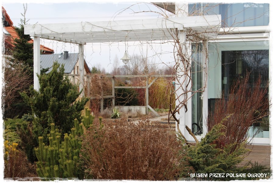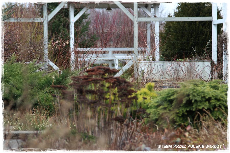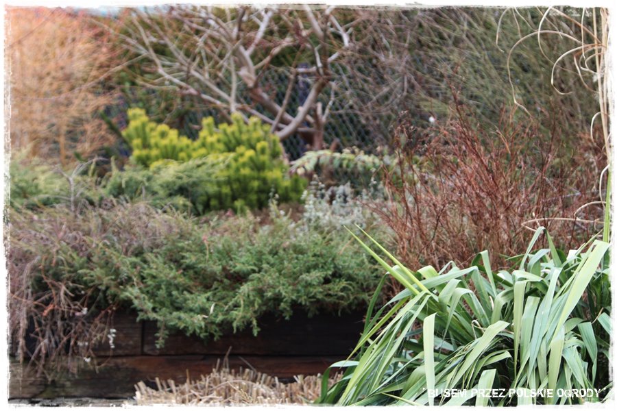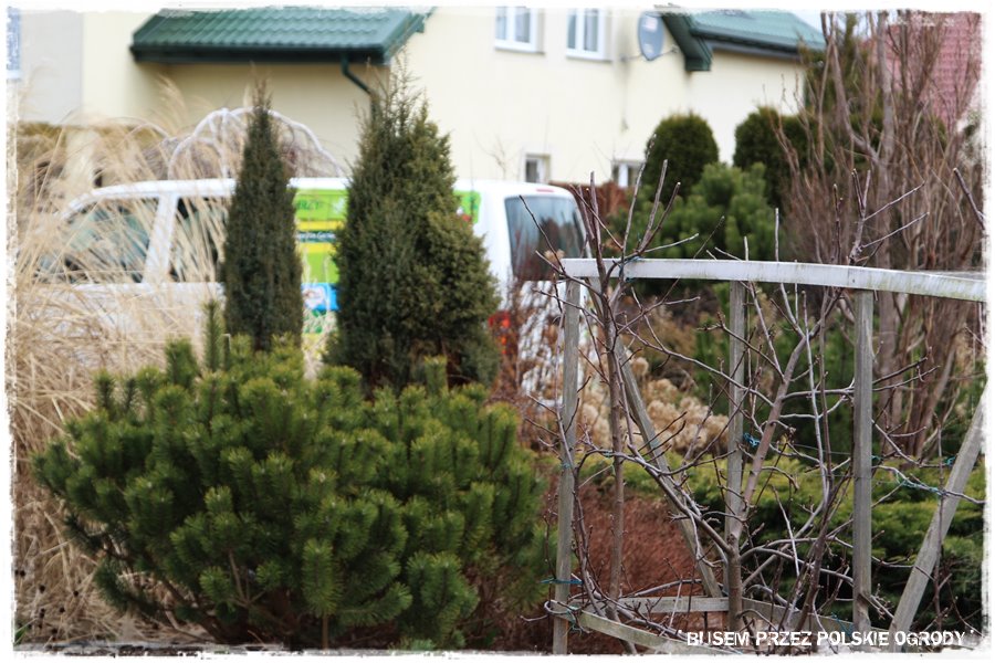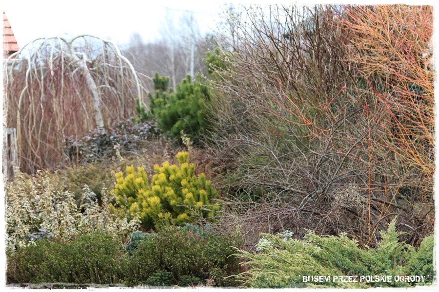 Co prawda nie jest to ogród typowo iglasty, jak było to na przykład w pierwszym i trzecim odwiedzonym ogrodzie, gdzie to rośliny iglaste stanowiły pewnego rodzaju szkielet. Wyznaczały obrys ogrodów, a jednocześnie sprawiały, że mimo zimy nie były “puste”. W tym ogrodzie roślinność jest zdecydowanie zróżnicowana, mieszana iglasto – liściasta. Występuje również sporo bylin, które jak się domyślasz, w marcu raczej nie błyszczą.