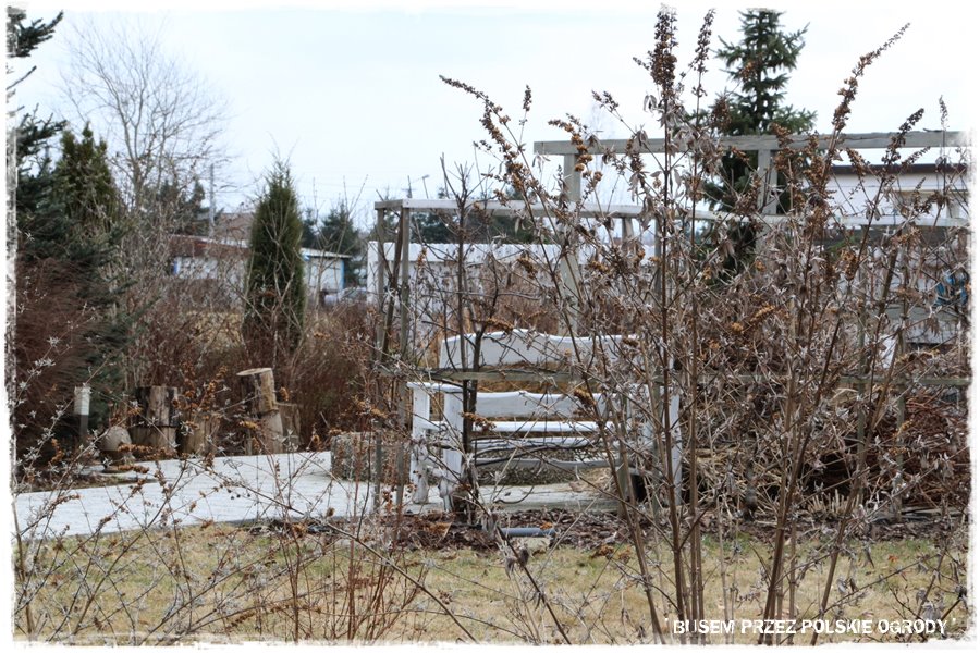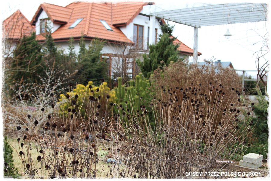Tylna część ogrodu, za domem, od strony północnej, to wyodrębniony ogród bylinowy. Zimą może nie zachwyca, ale za to latem…. spójrz na drugie zdjęcie poniżej.