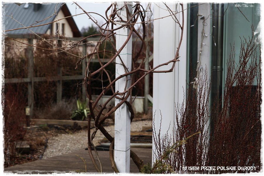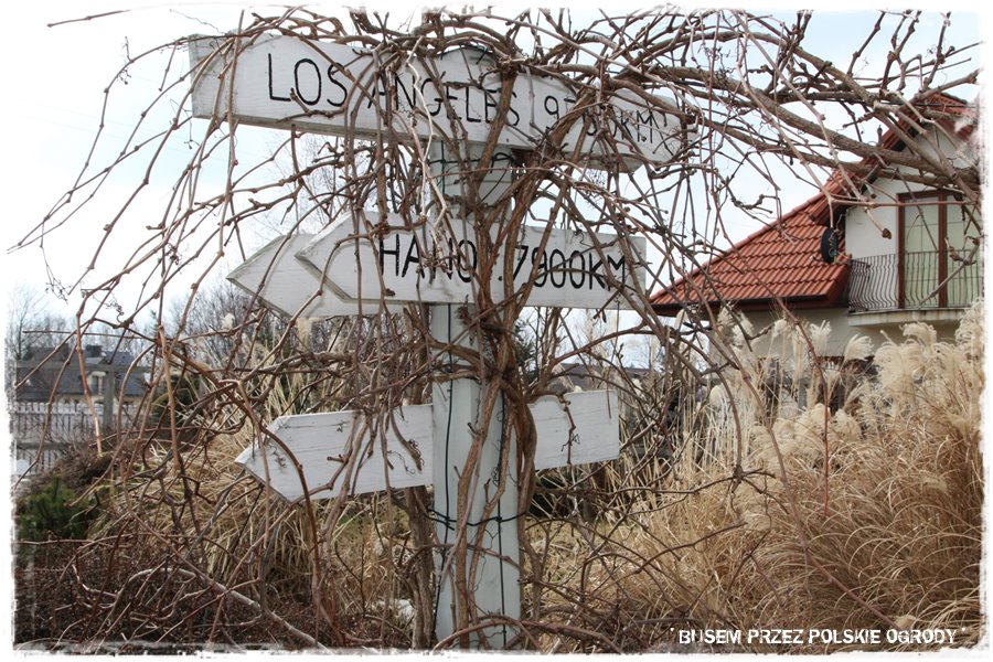 Z góry zaznaczę, że to nazwa wymyślona przeze mnie, jednak jak za moment się przekonasz, trudno się z nią nie zgodzić. Tym bardziej, w ogrodzie który odwiedziłem, elementy naturalne występują dosłownie na każdym kroku. Zrobione są z nich liczne pergole, kratki ozdobne, elementy zagospodarowania, oddzielające poszczególne strefy ogrodu, a nawet ciekawe “drogowskazy”. Zresztą za moment to wszystko zobaczysz.
