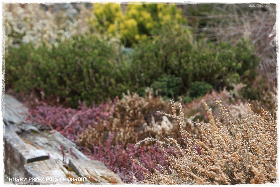 Mimo wspomnianych wrzosowisk i traw, ogród ten to zdecydowanie mieszana roślinność. Nie powiem, że “wszystkie rodzaje wszystkiego”, ale jednak dużo jest gatunków i odmian, które ciekawie się uzupełniają. Stąd nawet w połowie marca, okresie teoretycznie kiepskim dla ogrodów, tutaj nudzić się nie można.