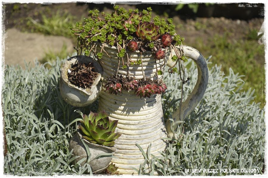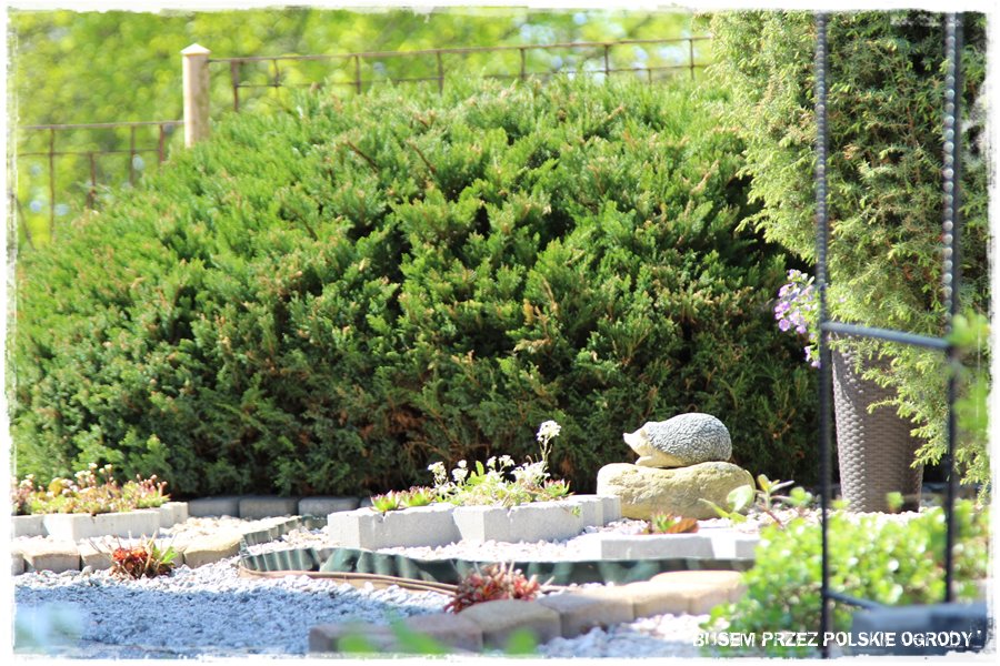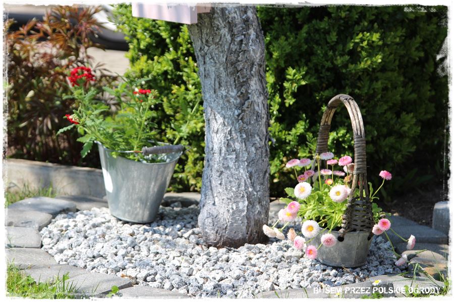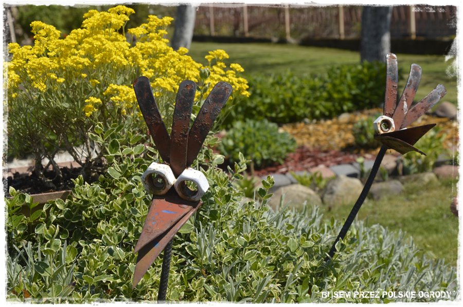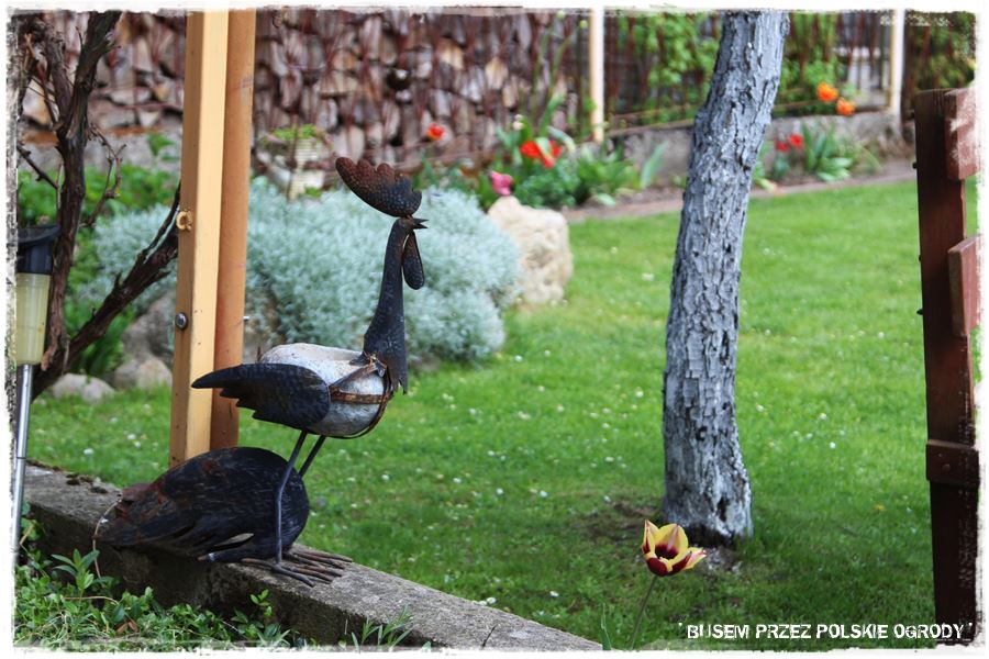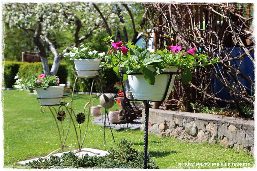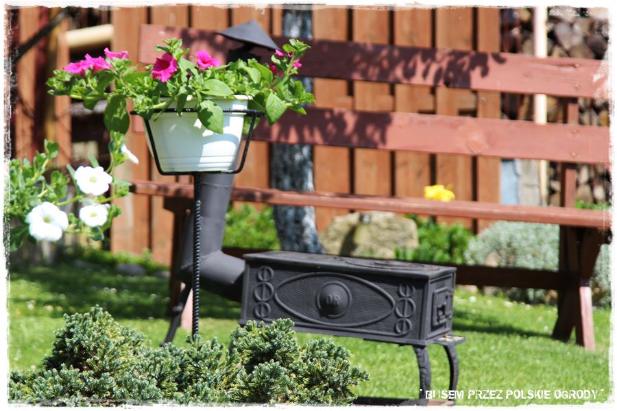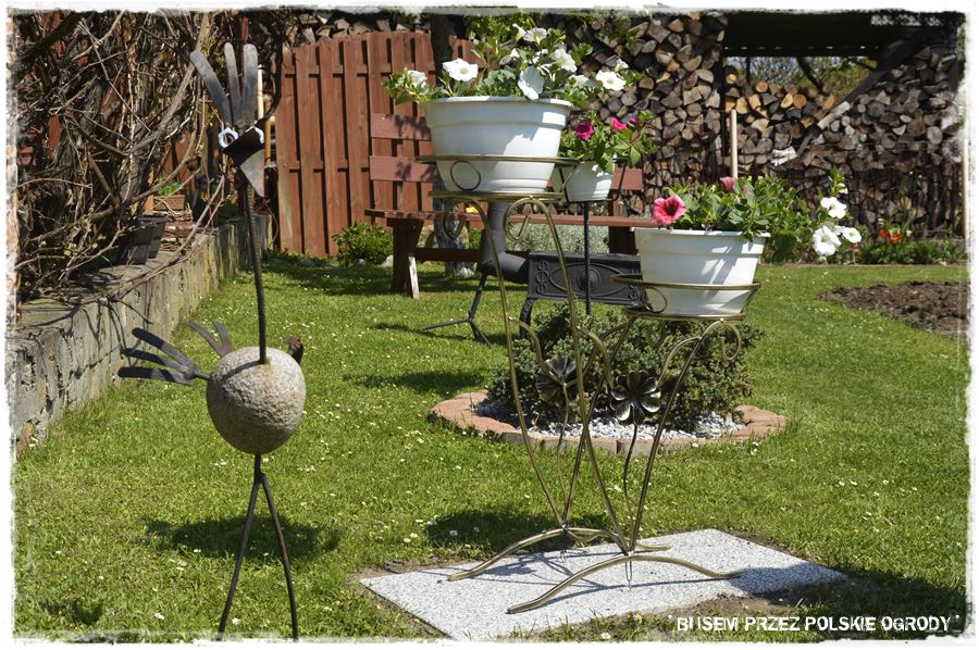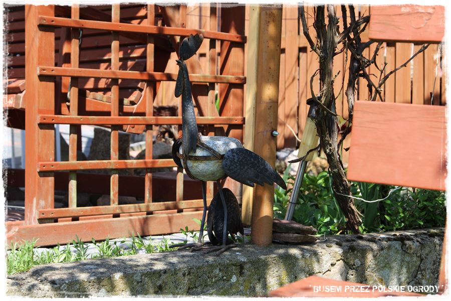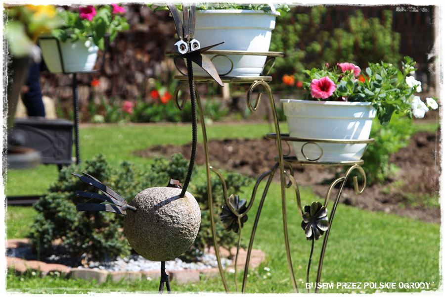 I właśnie ten element postanowiłem wyróżnić w tym ogrodzie. Nadać mu miano “ogrodu dekoracji”, które są obecne na każdym kroku. Co więcej wiążą się z nimi określone historie, których będąc tam bardzo przyjemnie się słucha. Chodząc z Jolą po ogrodzie i oglądając jej skarby, każdemu z nich można coś przypisać np. tą zrobił szwagier, to mąż ze starego czegoś, to kupione było tam, to przywiezione z tego miejsca, to z tamtego itd. Jednym słowem to super fajne historie, które widać, że w tym ogrodzie żyją własnym życiem. A zatem pierwszy i zdecydowany wyróżnik, to ogrodowe dekoracje oraz roślinne kompozycje. A drugi, który jest widoczny w tle tych pierwszych, to perfekcyjne utrzymanie i wypielęgnowanie ogrodu. I to właśnie zasługuje na pokazanie, zwrócenie uwagi i naśladowanie.