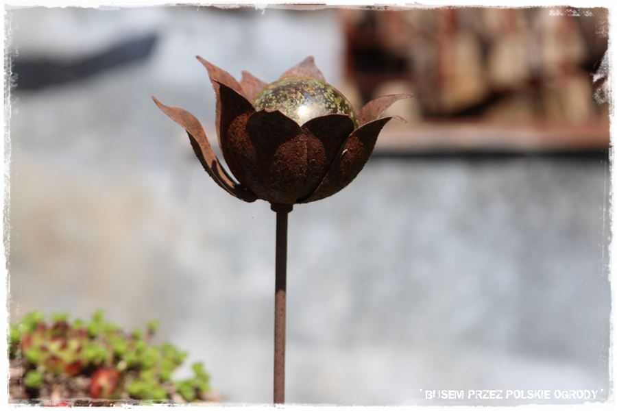 To chyba najbardziej wdzięczna i oryginalna grupa dekoracji. Fajne metalowe figurki, zrobione właściwie z jakichś niepotrzebnych, metalowych skrawków, które w oryginalnym połączeniu tworzą fajne, ogrodowe ozdoby. Zwróć też uwagę, że w niektóre z nich wkomponowane są również kamienie, natomiast wszystkie pokryte są fajnym, rdzawym nalotem.