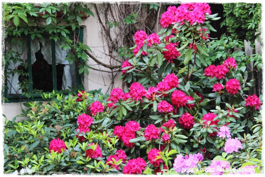 “Nasz ogród uprawiamy od 15 lat, ale jest znacznie starszy – obejmując go we władanie staraliśmy się zachować większość drzew, krzewów i bylin. To sprawia, że obecnie duża część ogrodu jest zacieniona, więc musimy dobierać rośliny, które tolerują stanowiska cieniste i półcieniste. Szczególnie ukochaliśmy rośliny zimozielone, które zdobią ogród cały sezon – mamy piękne okazy rododendronów, pierisów, mahonii, okazałą skimmię, wielką laurowiśnię, mnóstwo azalii japońskich… Lubimy też hortensje, a także kwiaty cebulowe – tulipany, narcyzy, lilie. W sezonie ogród zdobią również kwiaty jednoroczne w skrzyniach, donicach i różnych ciekawych pojemnikach. Mamy też kilka rarytasów – wspaniały, olbrzymi cedr atlaski, kilkuletnie drzewo figowe w gruncie, piękną lejcesterię…”