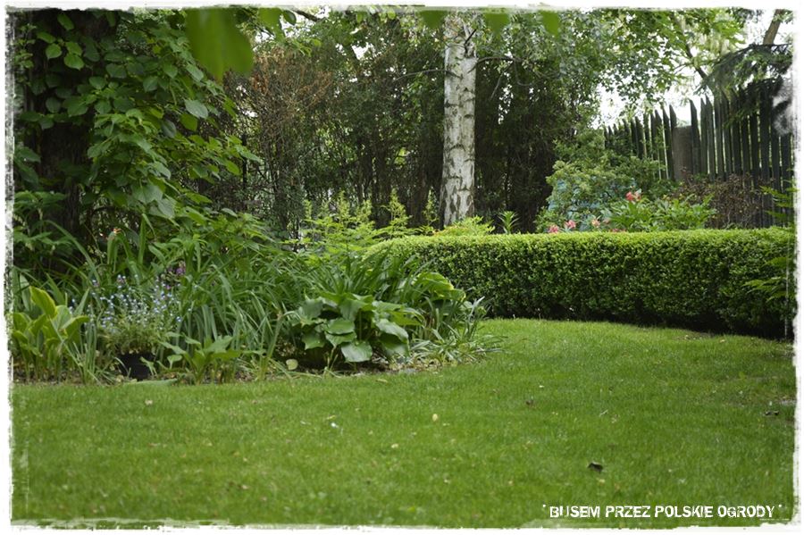 Zwróć również uwagę na ciekawie formowane, niskie żywopłoty, które tworzą fajną obwódkę w tylnej części ogrodu. Można powiedzieć, że taki „przed płotek” do właściwego płotu.