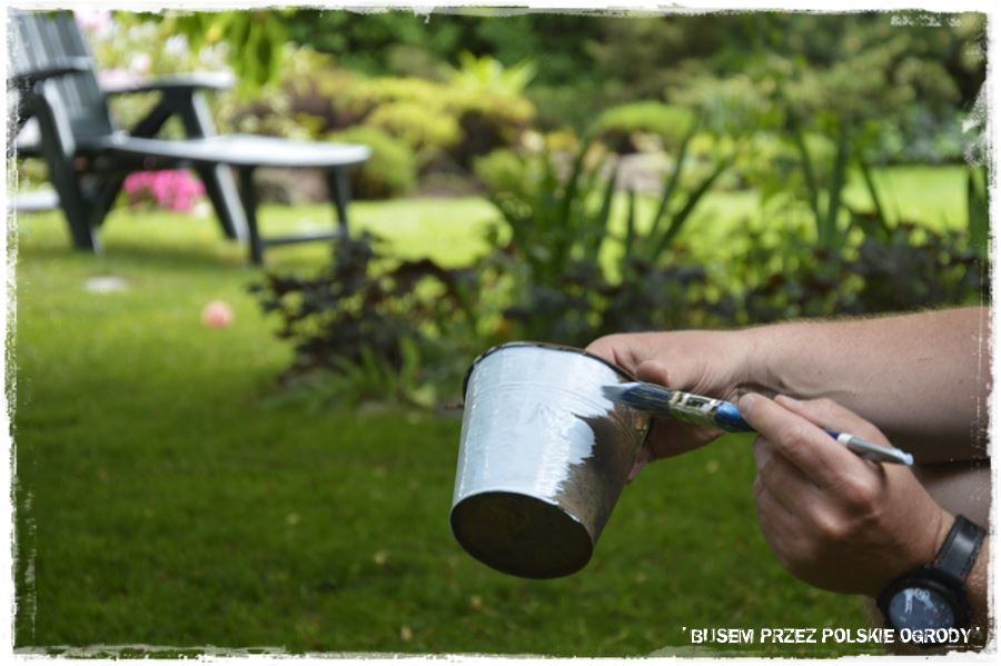 Z kolei malowanie pozwoliło na danie „drugiego życia” małemu, metalowemu wiaderku, które zyskało kolor niebieskiej niezapominajki.