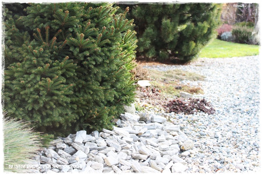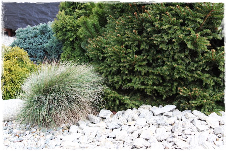 Trzon ogrodu to wspomniane rośliny iglaste. W tym elemencie Kornelia postawiła na odmiany “sprawdzone”, czyli takie, które nie wymagają szczególnych zabiegów, są odporne, oczywiście nie zrzucają na zimę igieł, a zatem praktycznie ze 100% pewnością wiadomo, że nie powinny sprawiać kłopotów. Nie będę w tym miejscu wymieniał wszystkich gatunków, ale za to zapraszam Cię na zdjęciową wycieczkę po ogrodzie, właśnie śladami iglaków. Gdyby któryś wpadł Ci w oko, chciałbyś znać jego nazwę, komentarze na dole postu są do Twojej dyspozycji, ale również polecam Ci spojrzeć na zakładkę bloga Kornelii, gdzie fajnie je pokazała i opisała.