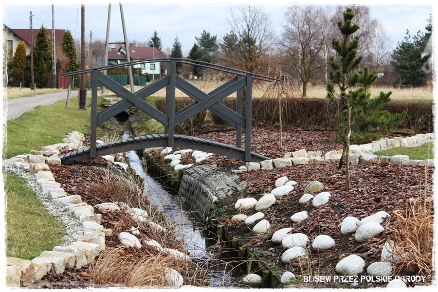 Z kolei we frontowej części działki, tej będącej jeszcze na etapie urządzania i obsadzania, na uwagę zasługuje ciekawie zagospodarowany rów wraz z efektownym mostkiem.