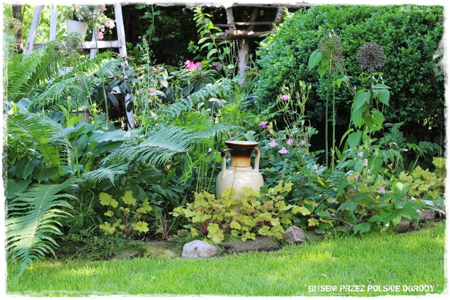 Wracając do ogrodu do grodu Pani Joli to muszę przyznać że jestem zachwycony.Powiem krótko to ideał do którego dążę .Takie ogrody lubię-dużo roślin, gęste nasadzenia, piękny trawnik i jeszcze ta cała otoczka ze staroci.Altanka też jest super.Brawo!!!!