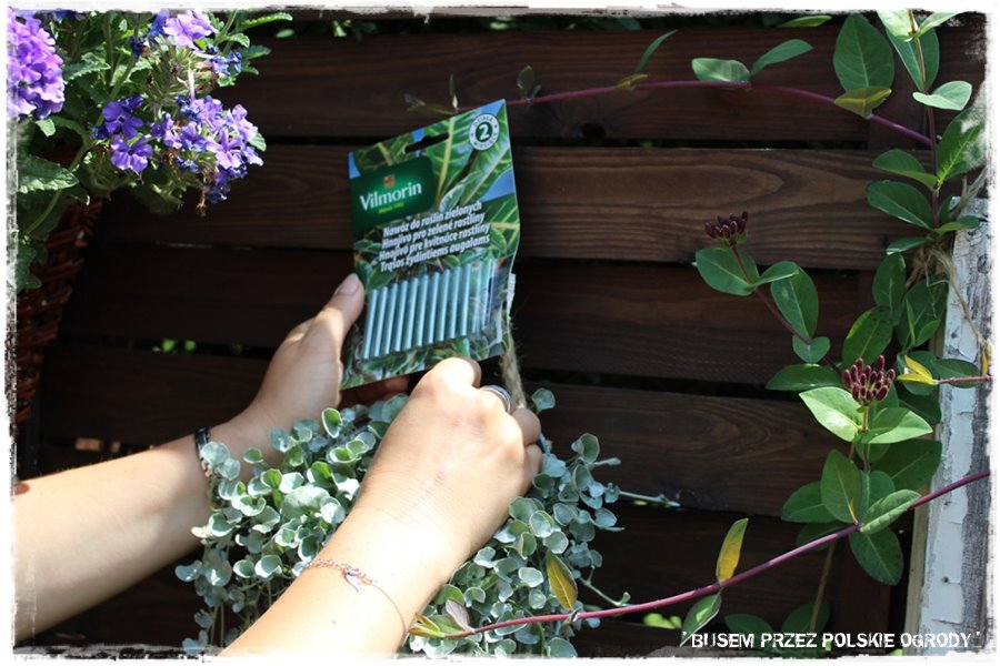 Następnie w użycie poszły nawozy do roślin zielonych w tzw. pałeczkach, które powtykaliśmy w donice z takimi właśnie roślinami.
