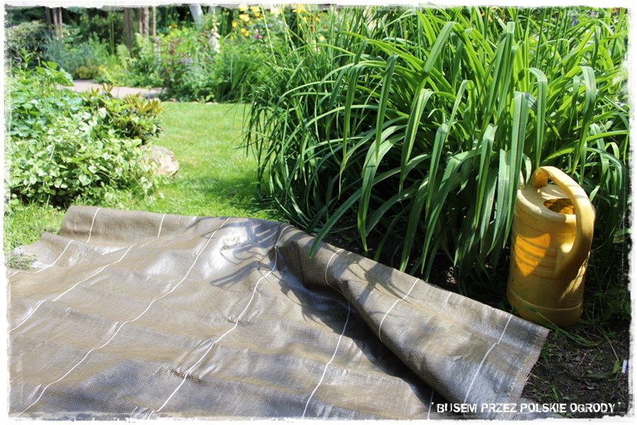 Z kolei z prac mniej ogrodniczych, ale jak najbardziej ogrodowych, udało się nam zrobić dwie rzeczy. Pierwsza, to wyłożyć agrotkaniną nowo powstający kącik, który następnie miał być zasypany kamieniem ozdobnym.