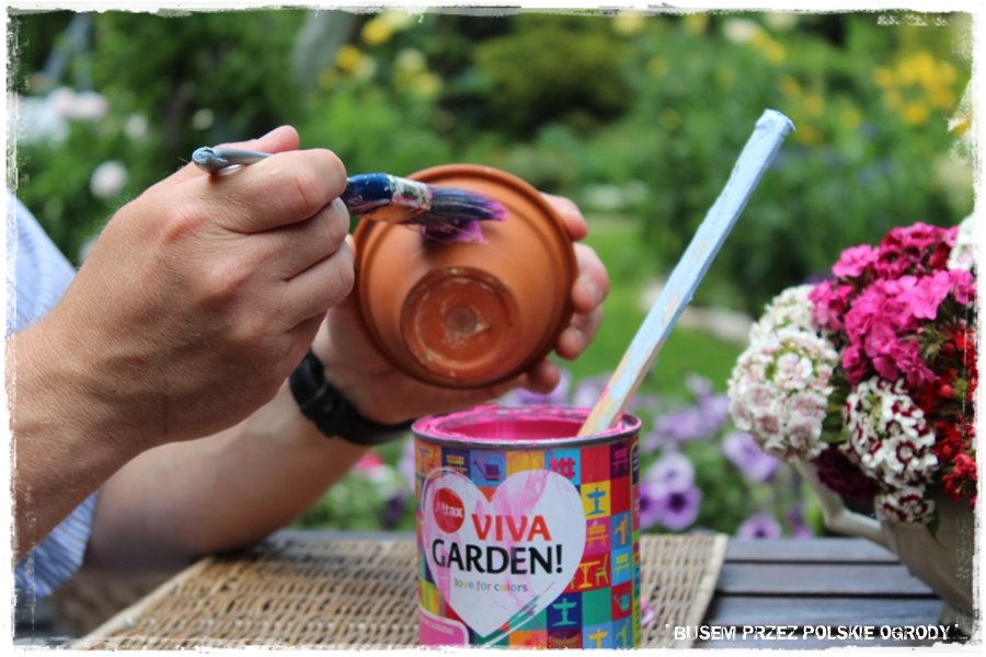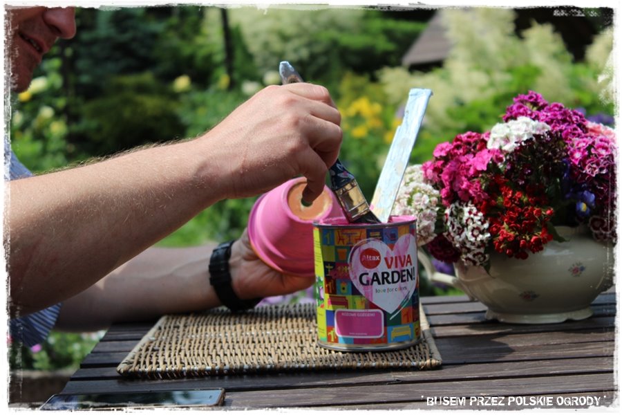A druga to tradycyjne malowanie, tym razem doniczki, na fajny, żywy kolor – różowe goździki.