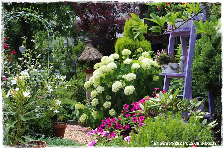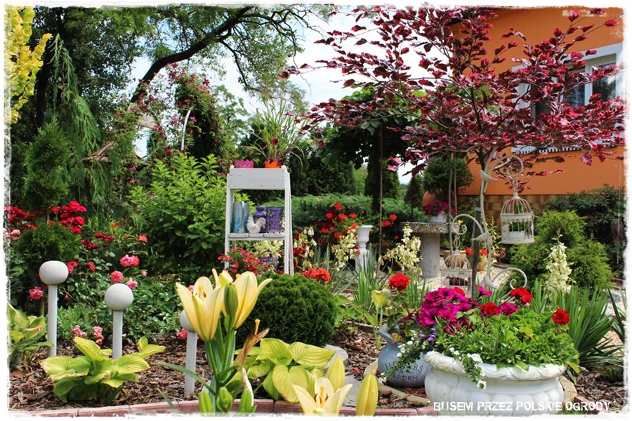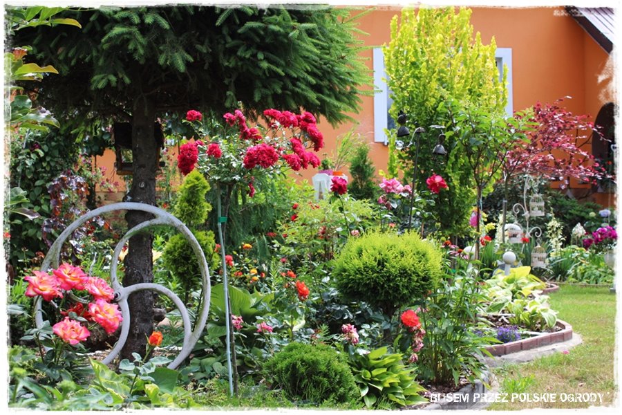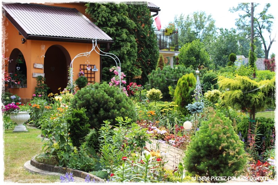 Jak pewnie już wiesz z poprzednich relacji, każdy z odwiedzonych ogrodów staram się na wstępie jakoś nazwać i zatytułować. Tak aby wstępnie nastawić Cię na to, czego możesz się po nim spodziewać. Innymi słowy staram się znaleźć jakąś główną cechę i wyróżnik danego ogrodu, który zdecydowanie odróżnia go od pozostałych. W tym miejscu zadanie to miałem niezwykle ułatwione. Dlatego, że to Właściciele sami nadali mu nazwę, z której ja tylko skorzystałem. Niemniej jednak mam wrażenie, że gdyby nawet jej nie było, to i tak chyba intuicyjnie bym ją jakoś podobnie zdefiniował. Dlatego, że ogród ten to prawdziwe królestwo kwiatów, a jednocześnie wszystkich możliwych kolorów, które jesteś sobie w stanie wyobrazić. I to kolorów nie tylko w samych roślinach, ale także dekoracjach i elementach małej architektury, której w tej ogrodzie są dziesiątki. I właśnie dlatego, jeśli sam miałbym tworzyć nazwę tego ogrodu, to do określenia “pełen kwiatów”, dodałbym jeszcze “pełen ozdób, dekoracji i ciekawych elementów”. Zresztą za moment się o tym przekonasz, bo tradycyjnie zapraszam Cię na zdjęciową wycieczkę po tym wyjątkowym miejscu.
