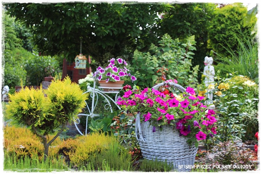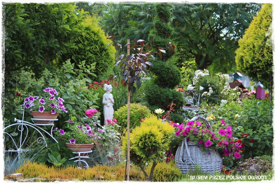 A zatem to takie ogólne spojrzenie na ten ogród, czyli klasyczny przypadek “od ogółu do szczegółu”. Najpierw dostrzega się jedną, wielką kolorową przestrzeń, później wydzielone z niej efektowne rabaty i zakątki, a dopiero na końcu, znajdujące się na każdym kroku ozdoby i dekoracje.