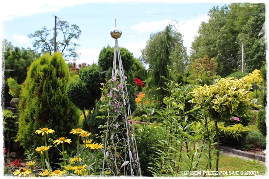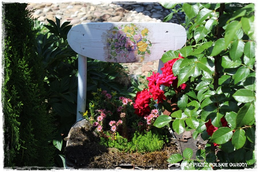 Trzecim odruchem, kiedy wzrok przyzwyczai się już do tego pięknego ogrodu, wejdzie się spokojnie pomiędzy rabaty, jest dostrzeżenie wielkiej ilości dekoracji, które się w tym ogrodzie znajdują. Ogólnie mówiąc są wszędzie, na każdym kroku, na każdej rabacie i w każdym możliwym miejscu. Gdybym chciał je tu wszystkie pokazać, to musiałbym tą relację wydłużyć z trzech do chyba stu części i to nie wiem, czy wszystko by się zmieściło. Dlatego tylko sygnalizuję i wybiórczo pokazuję kilka, różnych rodzajów elementów, które w tym ogrodzie można zobaczyć.