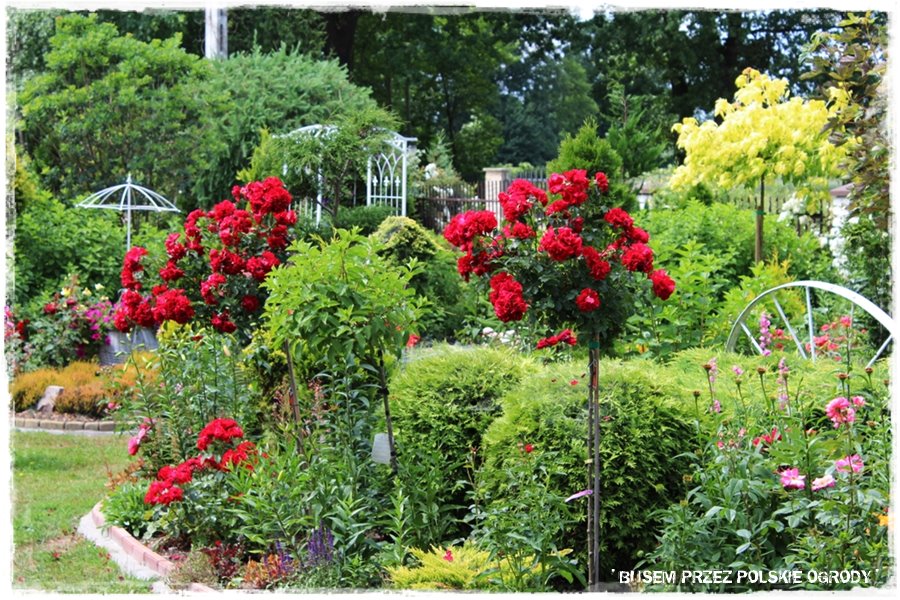 No właśnie. Skoro są takie ilości wspomnianych róż, to nie może zabraknąć też tych pnących. A zatem i specjalnych konstrukcji, tzw. pergoli, których w tym ogrodzie jest wiele, w przeróżnych rodzajach. Jednak co to jest i jak wygląda, znajdziesz już w drugiej części tego postu, o czym wspomniałem na wstępie, dzieląc go ze względu na obszerny materiał zdjęciowy.