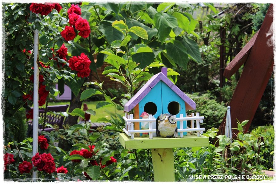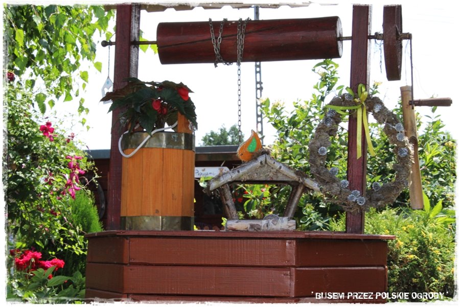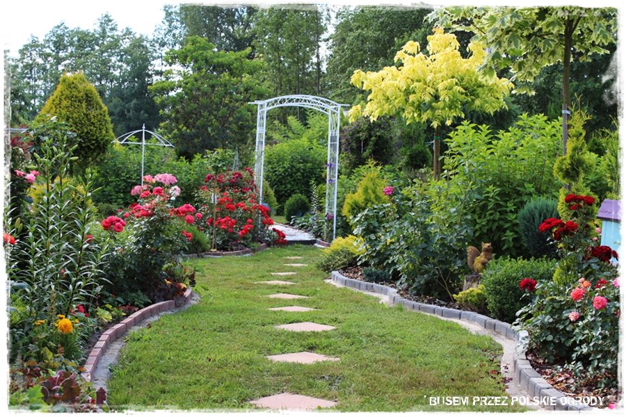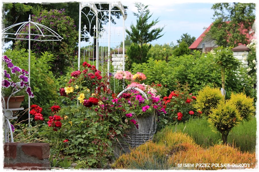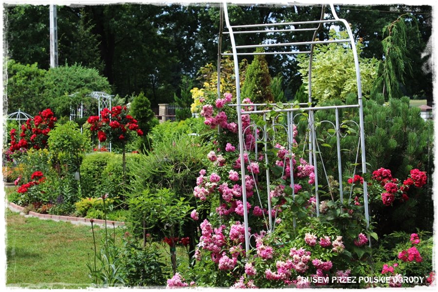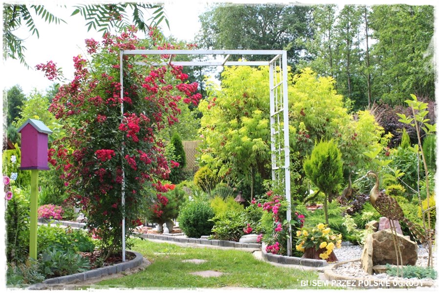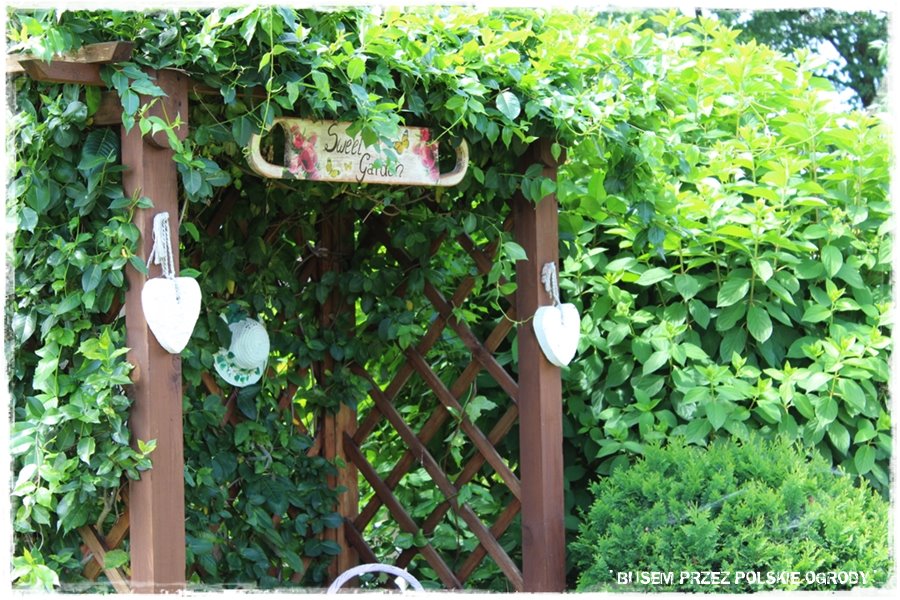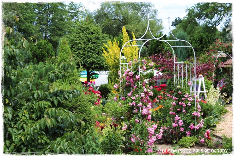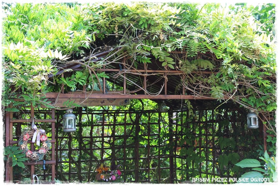 Jak wspomniałem, ogród ten to przede wszystkim królestwo kwiatów, a najbardziej z nich wyróżniają się róże. Stąd nie może zabraknąć też elementów, po których mogą się piąć. A zatem są, w wielu rodzajach, tworząc fajne ogrodowe dekoracje.