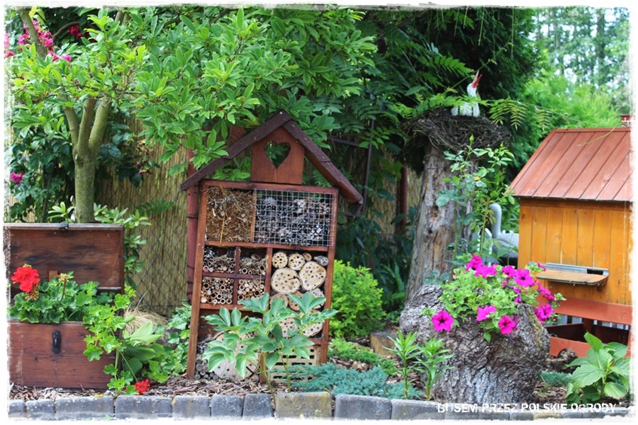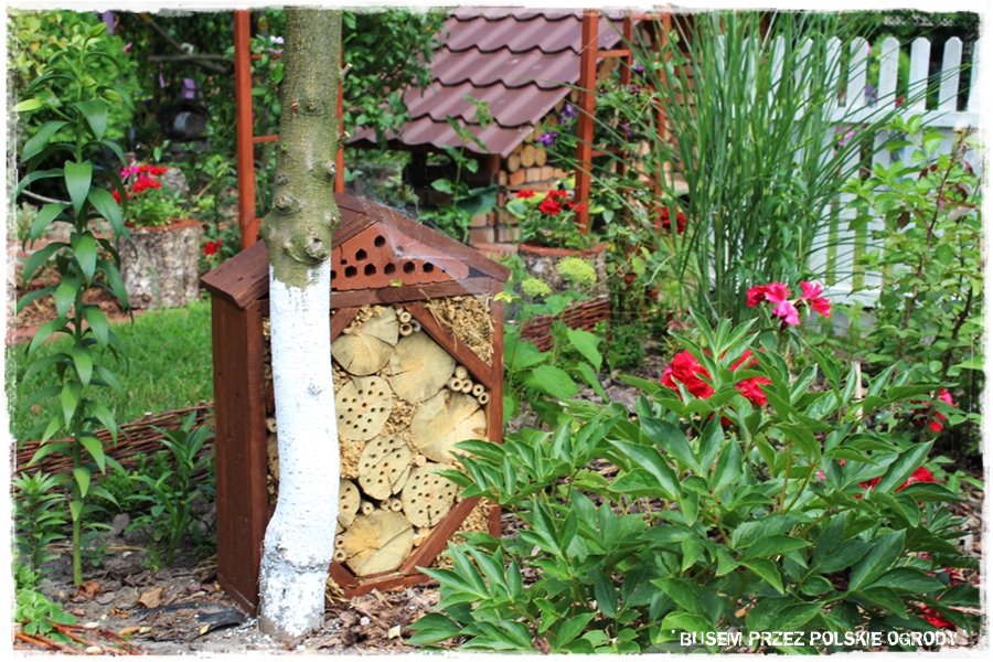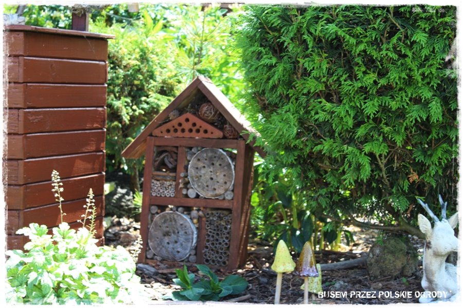A skoro w ogrodzie tym jest coś dla ptaków, to nie może również zabraknąć dla pożytecznych owadów. Zatem są, również w dużej ilości i pomysłowo wykonane domki. A jeśli również chciałbyś wiedzieć jak i dlaczego warto je wykonać i w ogrodzie umieścić, również znajdziesz to w poście na blogu.