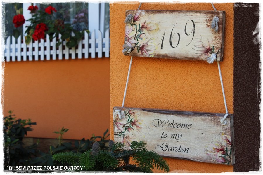 W „Ogrodzie pełnym kwiatów” bardzo ciekawie wyglądają również opisy różnych zakątków ogrodu. Własnoręcznie wykonane, stanowią fajną dekorację, a jednocześnie wprowadzają trochę taki element informacyjny dla gości, że z góry widzą gdzie się znajdują. Oczywiście opisany w ten sposób jest również sam budynek,