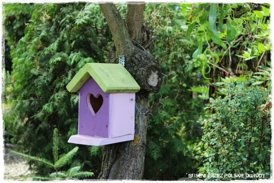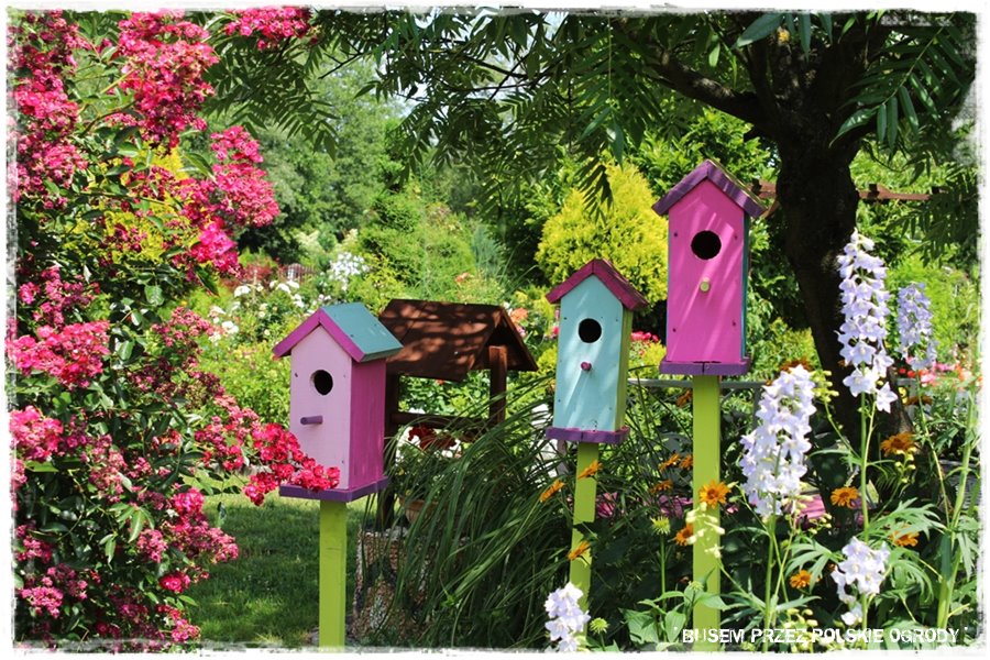 Ozdobne budki i karmniki dla ptaków.