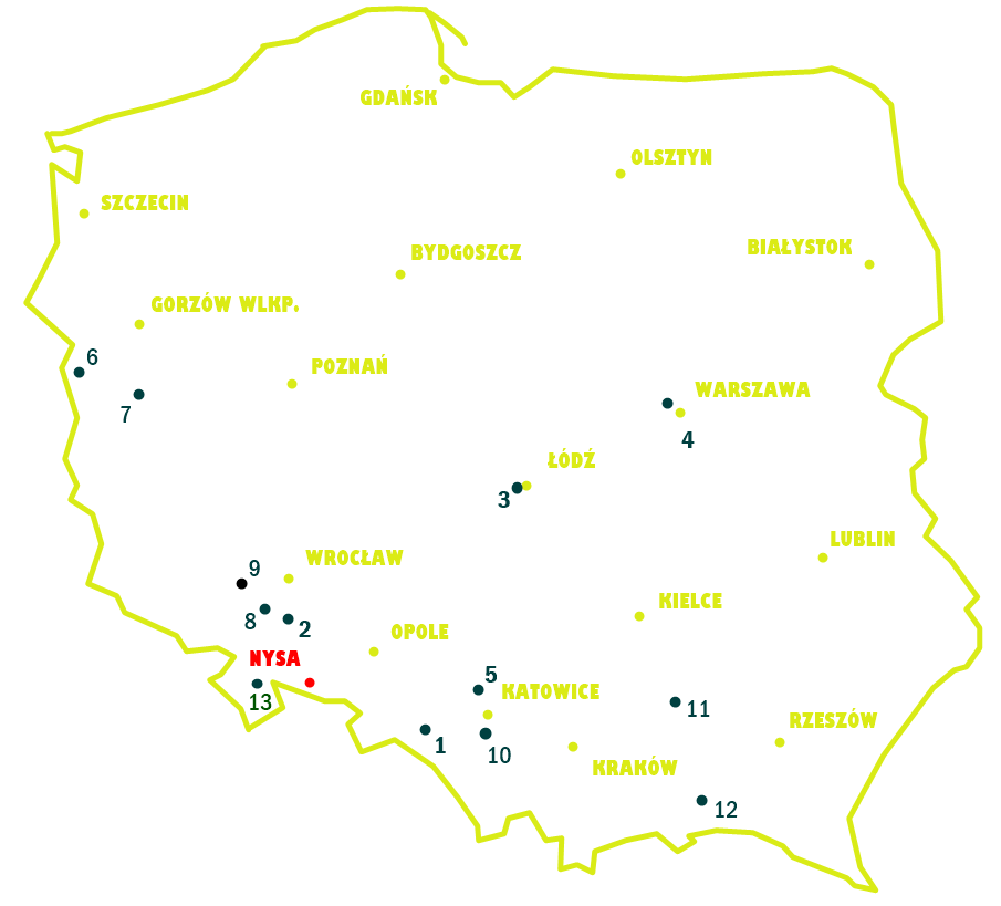 Kolor czerwony to tradycyjnie miejsce skąd wyruszyłem, a ta ciemnozielona kropka z numerem 13, to właśnie lokalizacja trzynastego ogrodu, położonego w województwie dolnośląskim. Do pokonania miałem zatem niewielką odległość, około 50 kilometrów w jedną stronę.