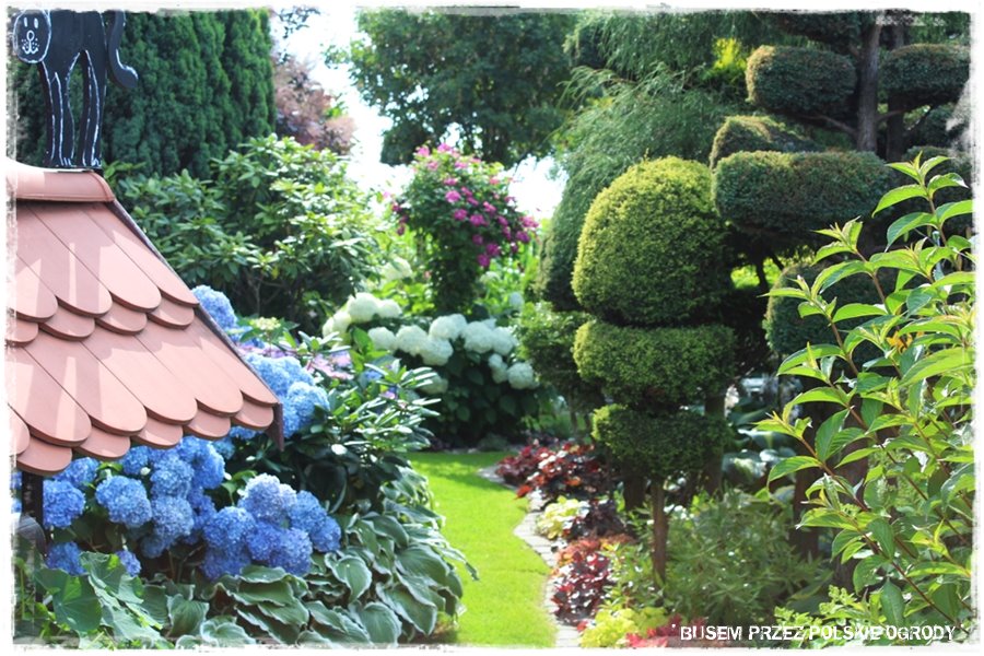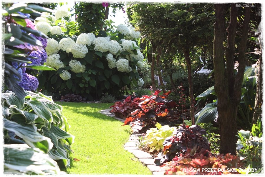 - po drugie ten ogród to prawdziwe królestwo roślin, których są tu niezliczone ilości, do tego w wielkiej liczbie gatunków i odmian. Jednak szczególnie zachwycją hortensje, które akurat teraz mają swój czas, a także żurawki i funkie, „wyłażące“ dosłownie z każdego miejsca,