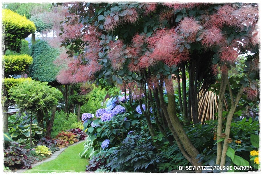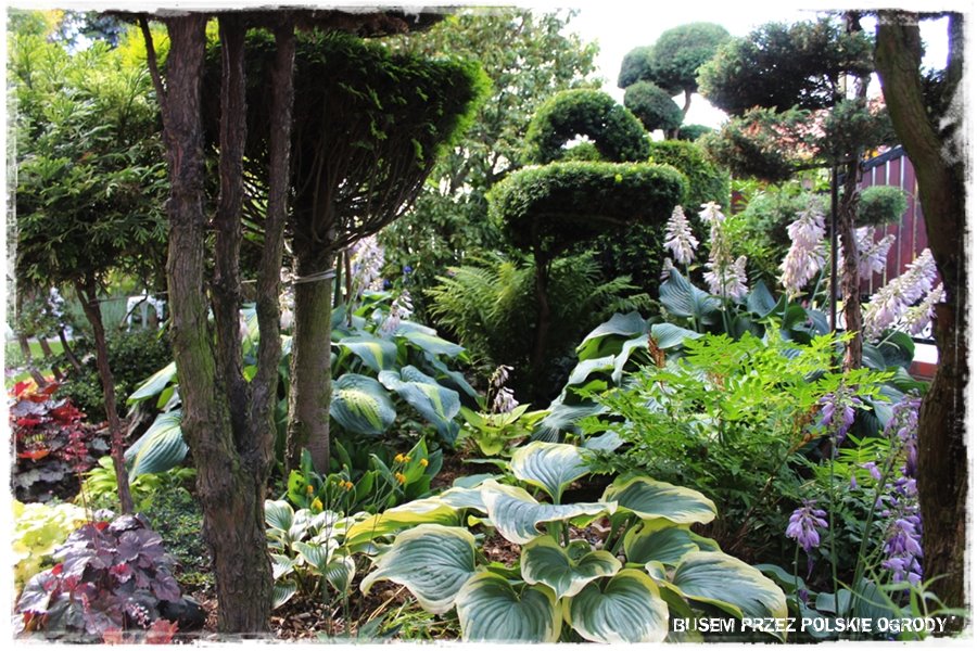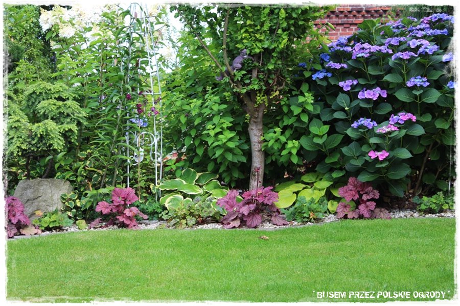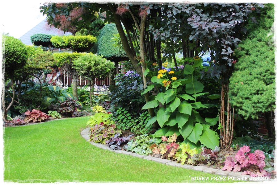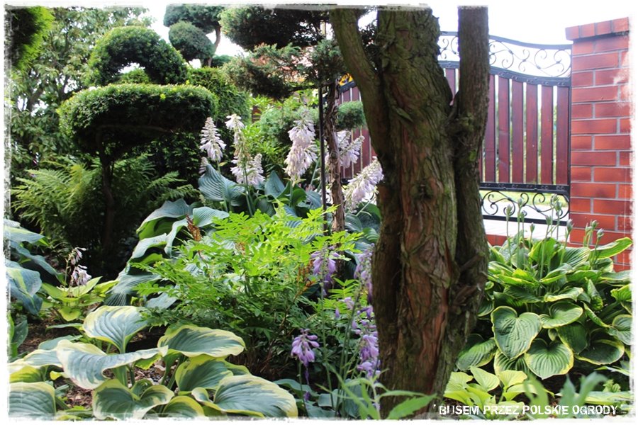 Wspomniane hortensje, żurawki, hosty, a nawet trawnik, to oczywiście nie jedyni przedstawiciele roślinności. Bo jak wspomniałem są jej tam niezliczone gatunki, dosłownie „wylewające się“ i wychodzące z każdej strony. Wszystko to powoduje, że ogród jest gęsty, szczelnie porośnięty, kolorowy, posiada dużą ilość załuków, ciekawych zakątków, w których można zachwycać się przeróżnymi gatunkami. Każdy warty uwagi, każdy albo ciekawie prowadzony, albo będący ciekawą odmianą. Nie sposób ich tu wszystkich wymienić, stąd spójrz tak ogólnie na kilka takich właśnie roślinnych ujęć.