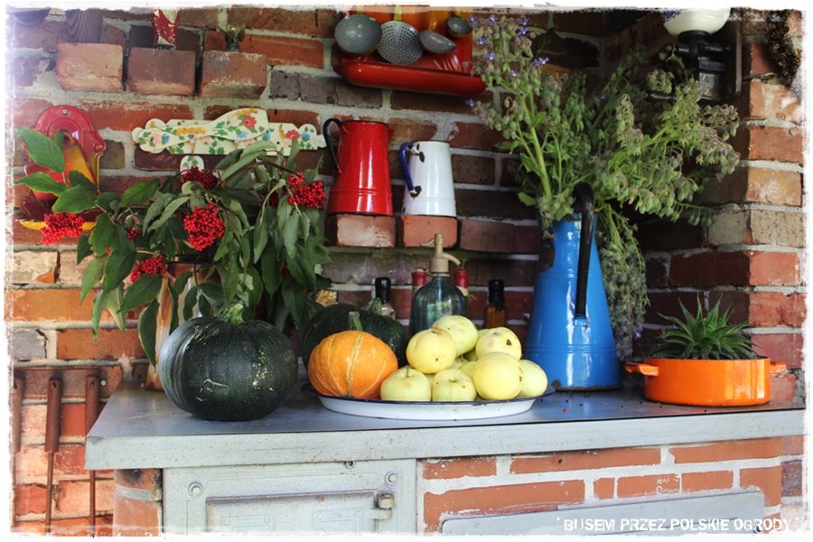 - po trzecie to miejsce ma swój bardzo charakterystyczny wyróżnik, który nie tylko zachwyca, ale jest jedyny w swoim rodzaju. To prawdziwa letnia kuchnia, połączona z altaną i równie oryginalną grillo – wędzarnią. Cały ten zakątek to jak jedno, duże polowe mieszkanie, w którym dosłowie, w tym okresie można mieszkać i funkcjonować,