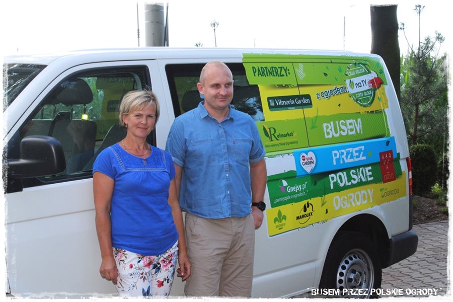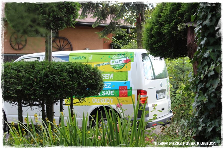 Wracając do wizyty, jak zawsze, bus zaparkował w ogrodzie, a ja miałem możliwość przywitać się i poznać z przemiłą Właścicielką ogrodu – Grażyną oraz pozostałymi członkami Rodziny. Jeśli czytasz uważnie wszystkie relacje, zauważyłeś pewnie, że to pewnego rodzaju schemat, który staram się powielać. Z drugiej strony trudno sobie wyobrazić, aby ten charakterystyczny bus do ogrodu nie wjechał, a jak nie przywitał się z Gospodarzami. Tym bardziej, że mam szczęście trafiać na wyjątkowo miłe, otwarte i gościnne osoby, co miało miejsce również w tym przypadku.