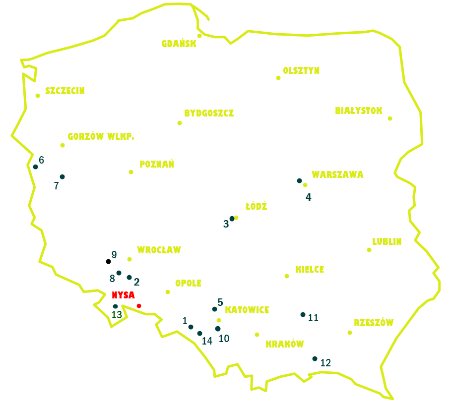 Kolor czerwony to tradycyjnie miejsce skąd wyruszyłem, a ta ciemnozielona kropka z numerem 14, to właśnie lokalizacja czternastego ogrodu, położonego w województwie śląskim. Do pokonania miałem zatem średnią odległość, około 160 kilometrów w jedną stronę.