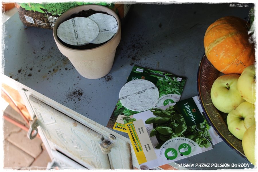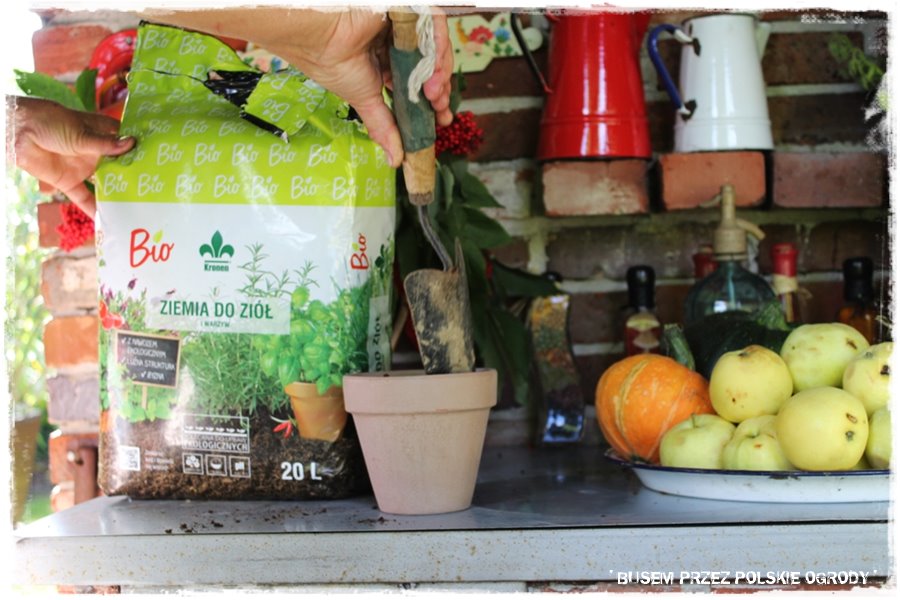 Jak w każdym z odwiedzonych ogrodów, tak i w tym przyszedł czas na wypróbowanie kilku produktów od Partnerów. Tak aby trochę się pobawić, a przy okazji zrobić coś pożytecznego, do tego na świeżym powietrzu i w ogrodzie. Co więcej, była również okazja zrobić coś w tej wspaniałej letniej kuchni, a zatem już lepszej scenerii nie można sobie wyobrazić. Wybraliśmy więc specjalne nasiona ziół na krążkach, które idealnie nadają się do uprawy w donicy i posialiśmy (umieściliśmy) w specjalnie dedykowanym do tego podłożu. Myślę, że niebawem Grażyna będzie miała z nich pożytek.