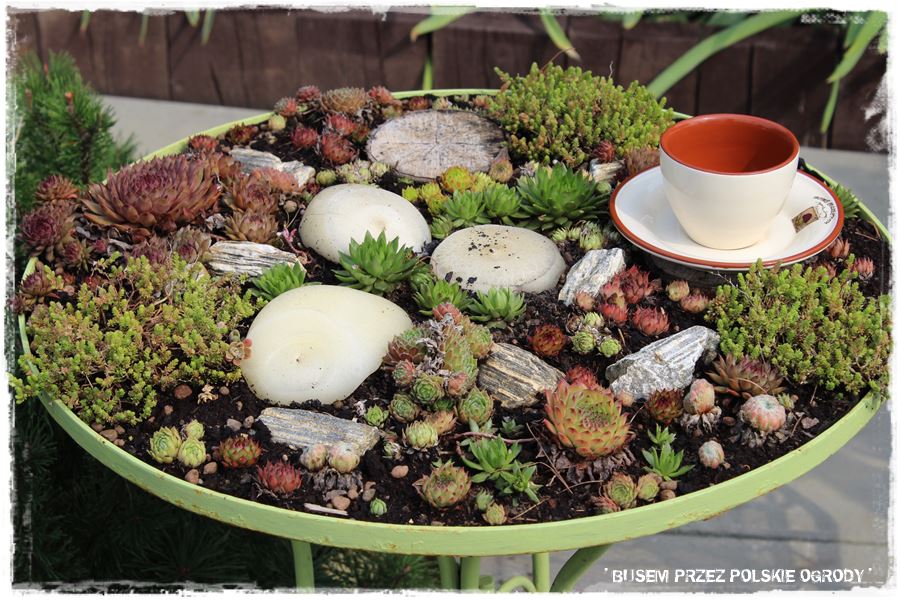 Tak jak pokazany stolik z rojnikami, który na pewno znajdzie miejsce w moim ogrodzie.