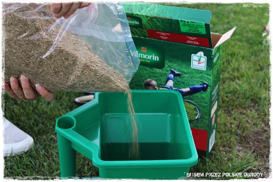 Następnie z uwagi, że to już koniec sierpnia, a zatem doskonały czas na zakładanie trawników, zrobiliśmy trochę dosiewek, w różnych miejscach. Przy okazji była też możliwość wypróbowania nowego siewnika, który dostałem od jednego z Partnerów.