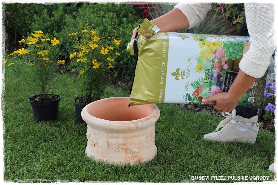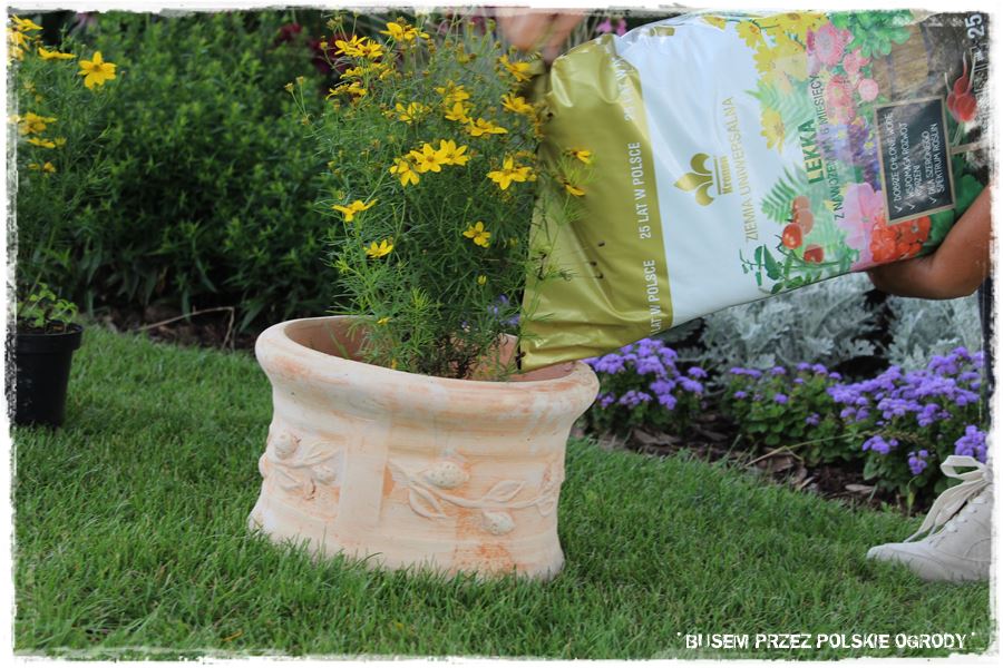 Jak w każdym z odwiedzonych ogrodów, tak i w tym przyszedł czas na wypróbowanie kilku produktów od Partnerów. Tak aby trochę się pobawić, a przy okazji zrobić coś pożytecznego, do tego na świeżym powietrzu i w ogrodzie. Tym bardziej, że w takim miejscu to prawdziwa przyjemność. Na początek wybraliśmy więc nawóz do roślin kwitnących w pałeczkach, którym zasililiśmy nasadzenia doniczkowe.
