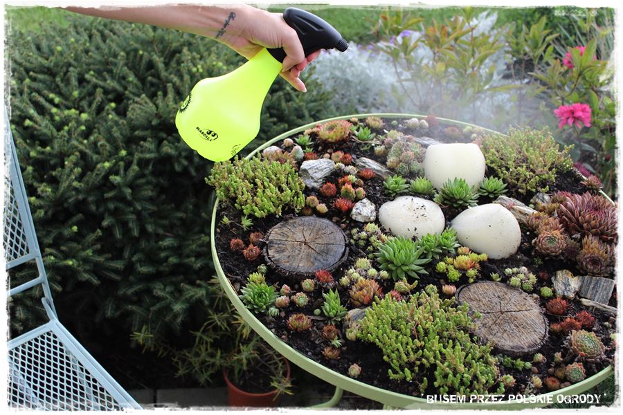 a na koniec nie mogłem sobie odmówić przyjemności aby wrócić do tego pięknego stolika z rojnikami, które Natalia na moich oczach podlała.