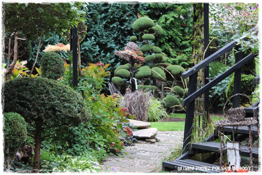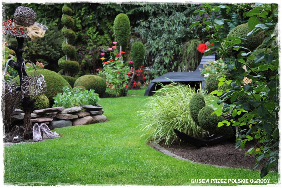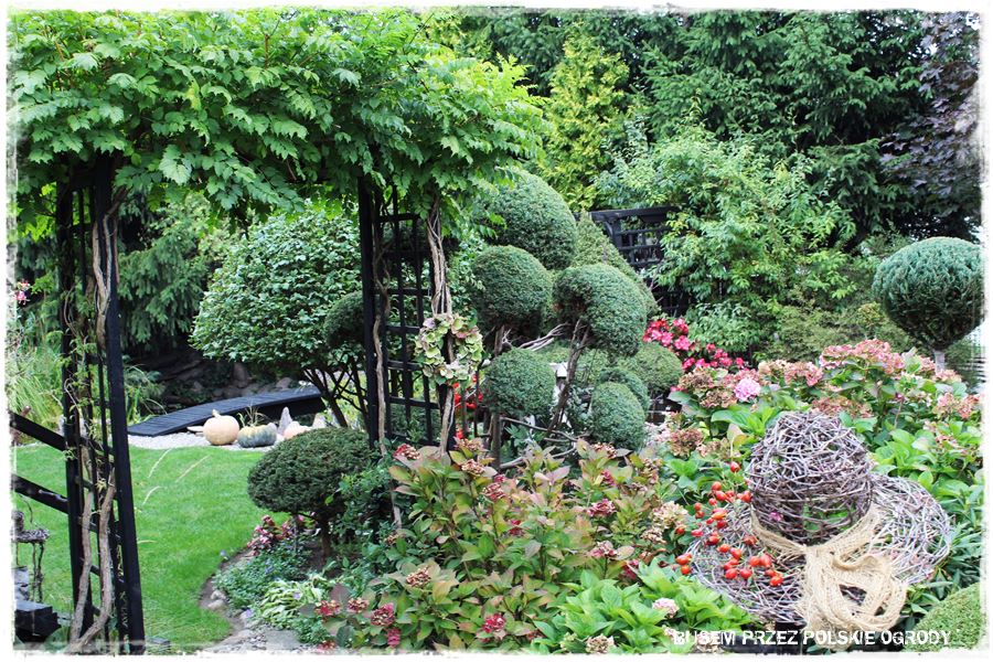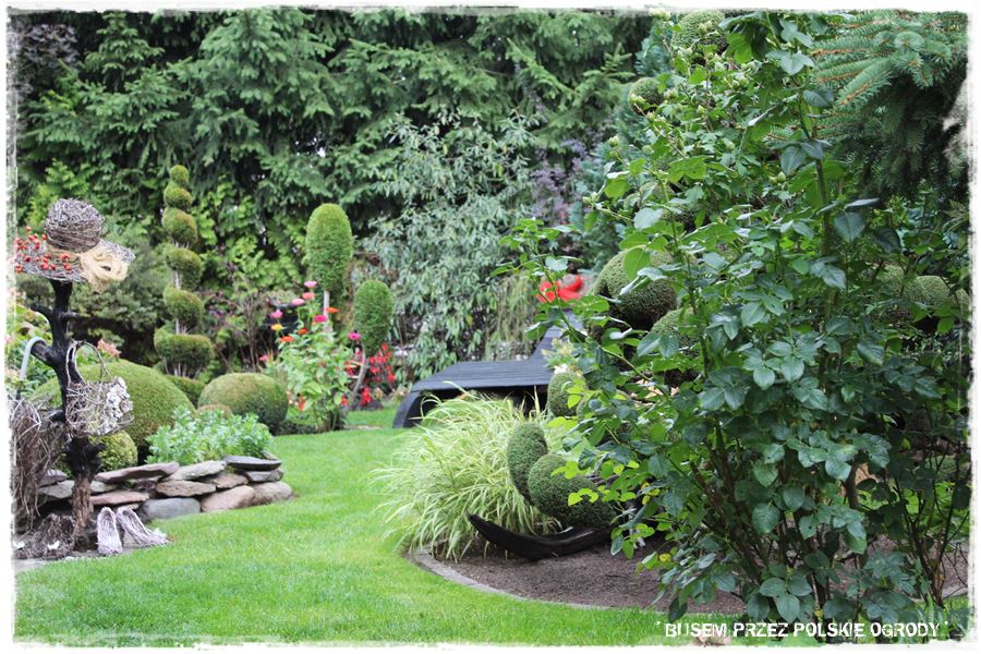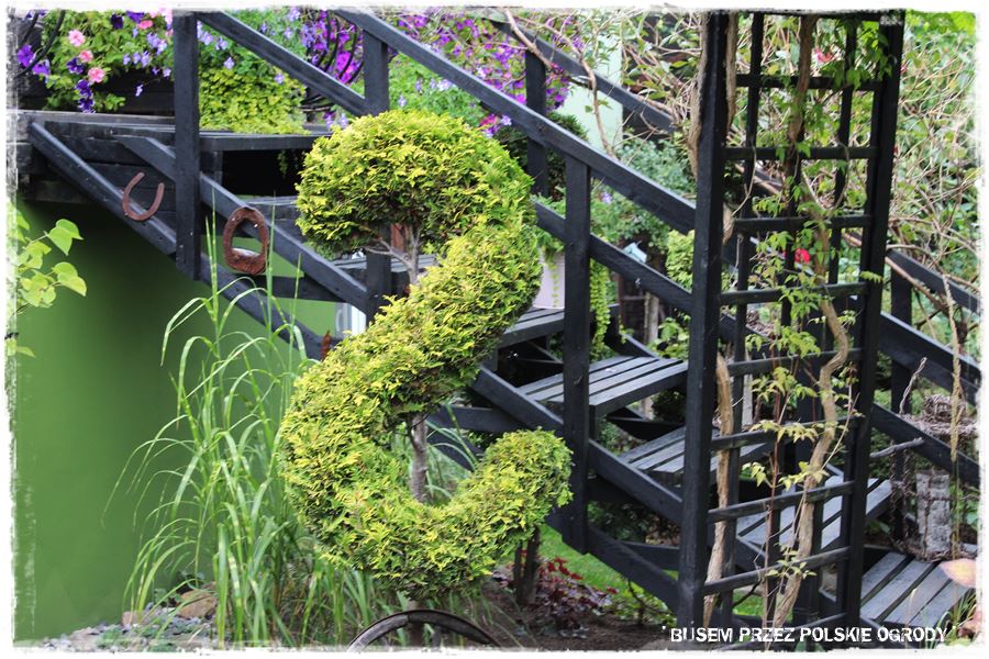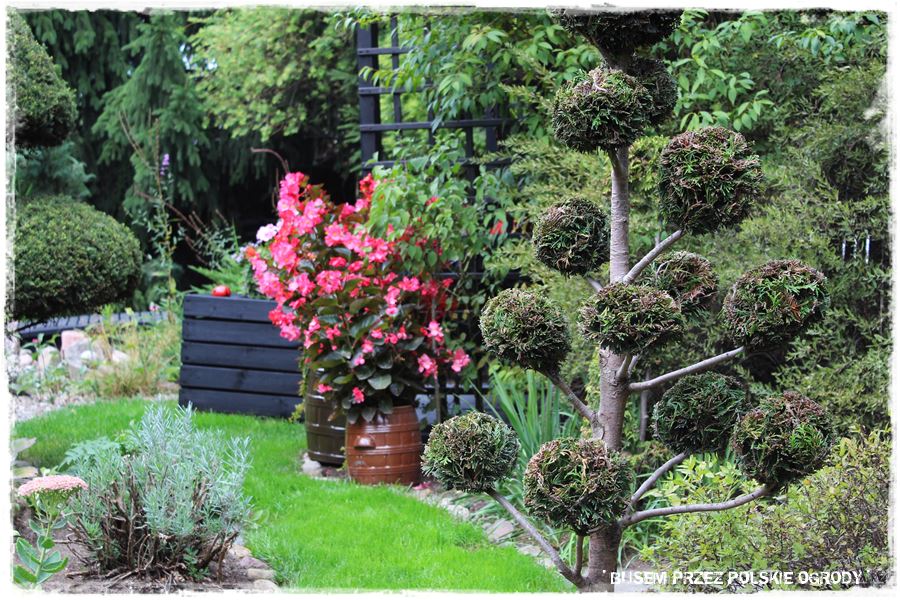 Moją największą dumą w ogrodzie jest “niwaki” z żywotnika, który przypomina swoim wyglądem bonsai. Są na nim przystrzyżone chmurki, serduszka, poduszki i różne fantastyczne kształty. Ponadto mam też rośliny piękne formowane w kule, stożki czy spirale, które przemieniają ogród w małą galerię sztuki.