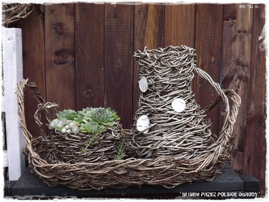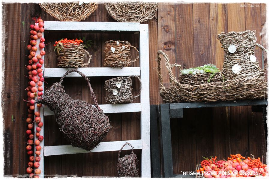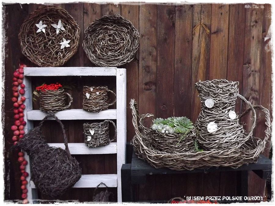 Moje dekoracje to plecione z gałązek brzozowych oraz pędów winobluszczu wielkie kapelusze, kosze, dzbanki, a nawet filiżanki, które z całej kolekcji wydają mi się najbardziej urocze. Jednak największą moją dumą są rzeźba kobiet, które są niemal naturalnych rozmiarów. Kosztowały mnie mnóstwo wysiłku, ale efekt końcowy wynagradza mi to wszystko z nawiązką. Wiele dni pracy, zarwanych nocy, a także innych obowiązków, które niestety chwilowo zeszły na drugi plan.