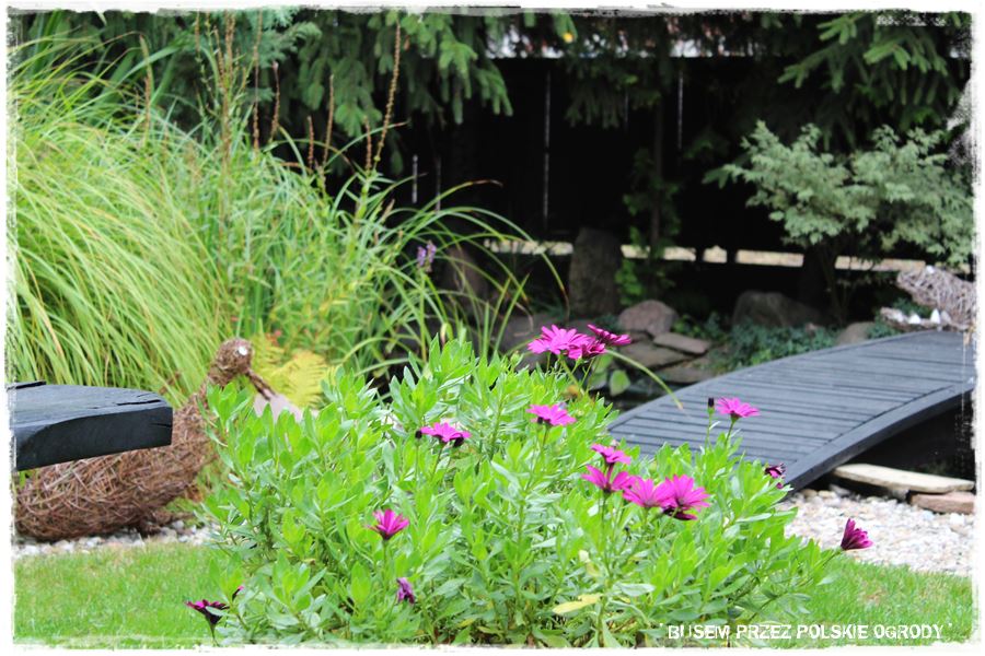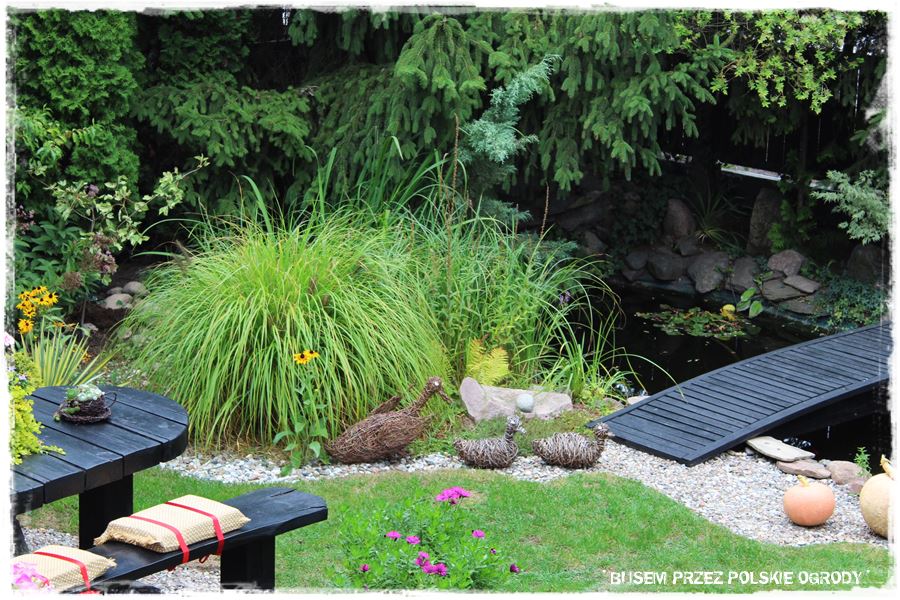 W moim ogrodzie mam wszystko, co w ogrodzie być powinno. Są chodniczki, którymi przemieszczam się w poszczególne jego części, kąciki wypoczynkowe, rabaty obsadzone pięknymi i wypielęgnowanymi roślinami oraz oczywiście starannie prowadzony trawnik. Jest nawet nieduże oczko wodne i przechodzący nad nim mały mostek, który kojarzy mi się z wielkimi ogrodami, bogatymi we wszelaką ogrodową architekturę i ciekawe rozwiązania. Lubię czasem na nim stanąć i wpatrywać się w lustro wody oraz pływające w oczku, małe, kolorowe rybki.