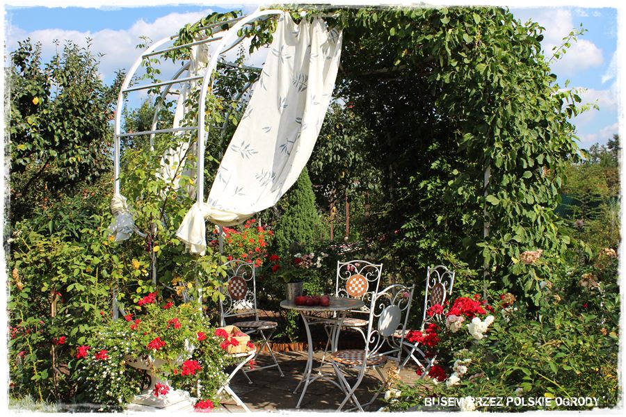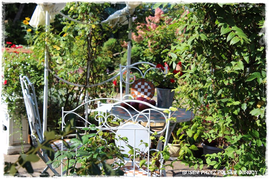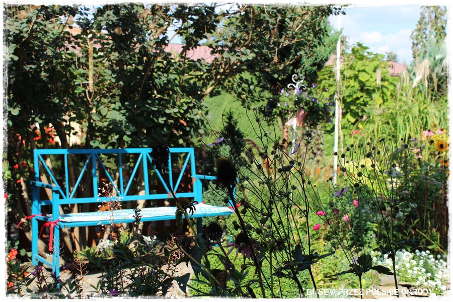 Jak w wielu odwiedzonych ogrodach, tak i tutaj, bardzo ważnym elementem są ciekawe, zróżnicowane, dobrze wkomponowane i porozmieszczane kąciki wypoczynkowe.