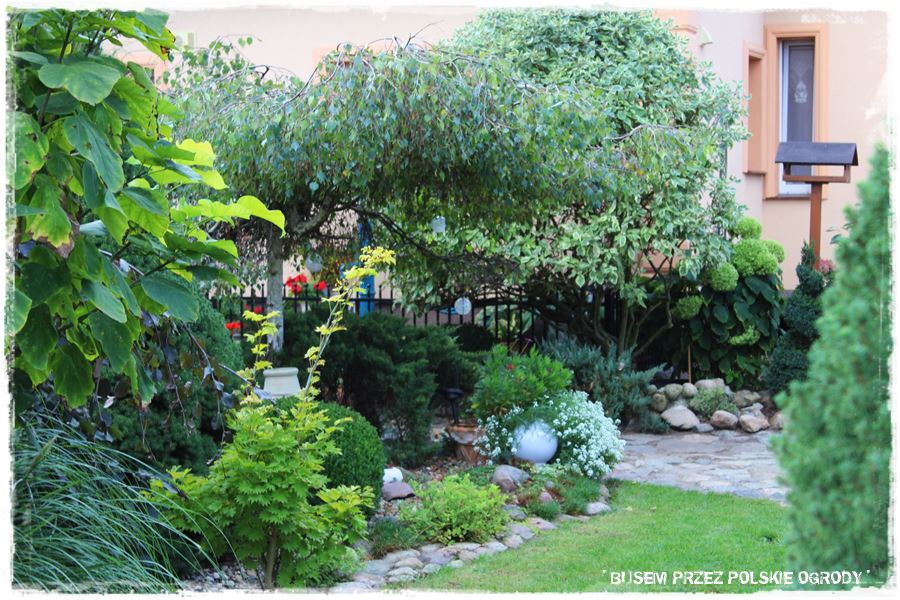 Dziewiętnasty odwiedzony ogród położony jest na dwunastoarowej działce, mającej kształt prostokąta, ponadto stosunkowo długiej i wąskiej. To pozornie niekorzystne ukształtowanie, przez Gospodarzy zostało zamienione w zaletę i ciekawie wykorzystane. Stąd idąc wzdłuż ogrodu, wchodzi się w kolejne nieco inne strefy, inaczej zagospodarowane i wykorzystane.
