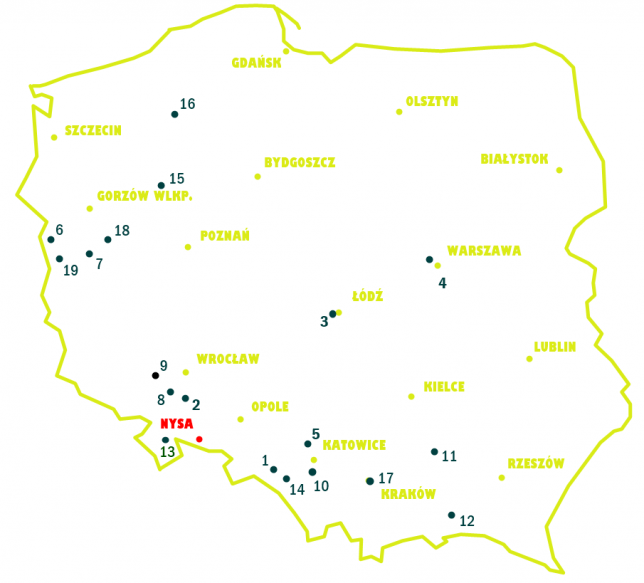 Kolor czerwony to tradycyjnie miejsce skąd wyruszyłem, a ta ciemnozielona kropka z numerem 19, to właśnie lokalizacja dziewiętnastego ogrodu, położonego w województwie lubuskim. Do pokonania miałem zatem około 350 kilometrów w jedną stronę.