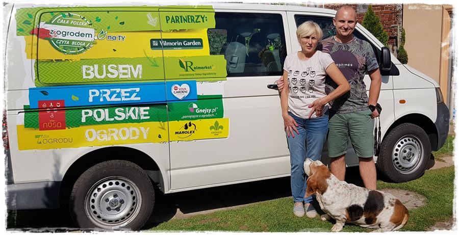 Wracając do wizyty, jak zawsze, bus zaparkował w ogrodzie, a ja miałem możliwość przywitać się i poznać z przemiłą Właścicielką ogrodu – Zdzisławą oraz jej Siostrą Grażyną. Jeśli czytasz uważnie wszystkie relacje, zauważyłeś pewnie, że to pewnego rodzaju schemat, który staram się powielać. Z drugiej strony trudno sobie wyobrazić, aby ten charakterystyczny bus do ogrodu nie wjechał, a jak nie przywitał się z Gospodarzami. Tym bardziej, że mam szczęście trafiać na wyjątkowo miłe, otwarte i gościnne osoby, co miało miejsce również w tym przypadku.