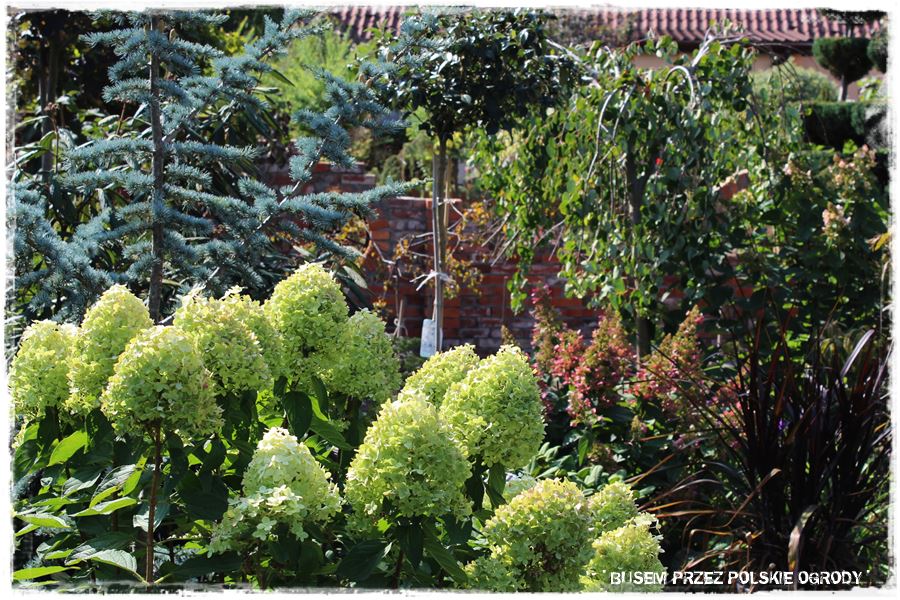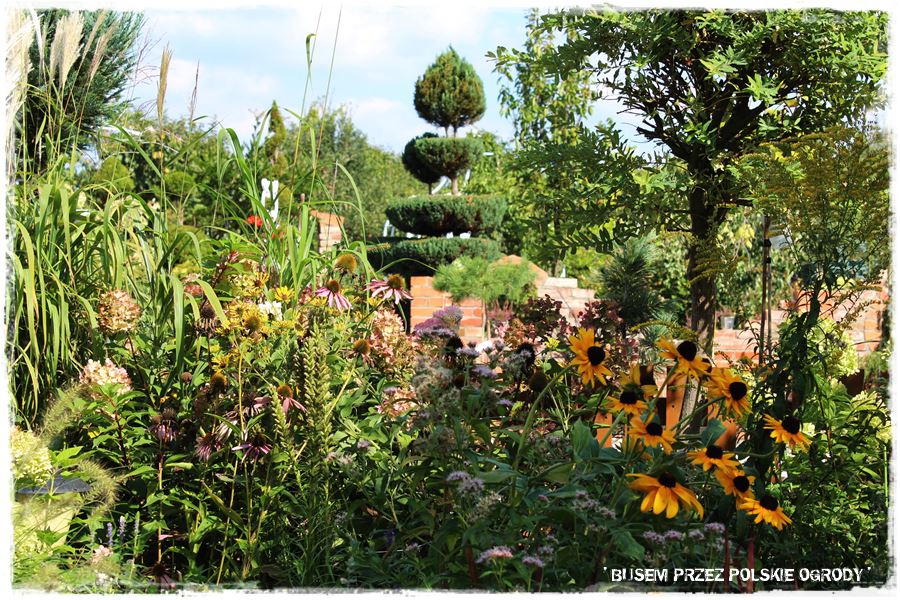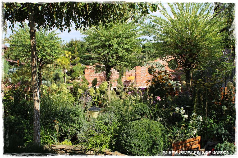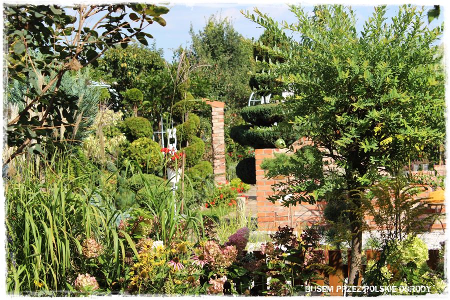 To poza wspomnianymi ceglanymi budowlami, chyba główny wyróżnik tego ogrodu. Liczne wijące się rabaty, a w ich bardzo gęste i różnorodne rośliny. Zarówno liściaste, iglaste, byliny, kwiaty, trawy, jednym słowem chyba wszystko, co w ogrodach może rosnąć. I o ile pozornie może się wydawać, że jest to niepotrzebne, to ma jedną, ważną zaletę: ogród jest ciekawy, cały czas coś w nim kwitnie, ale przede wszystkim zimą, nie staje się pusty. A to jak się domyślasz, bardzo ważny element.