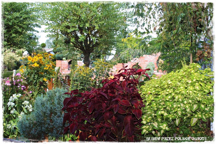 Z tymi gęstymi i zróżnicowanymi nasadzeniami, ściśle związane są kolory. A konkretnie duże kontrasty kolorystyczne, dzięki czemu ogród jest jeszcze ciekawszy i przyjemny w odbiorze.