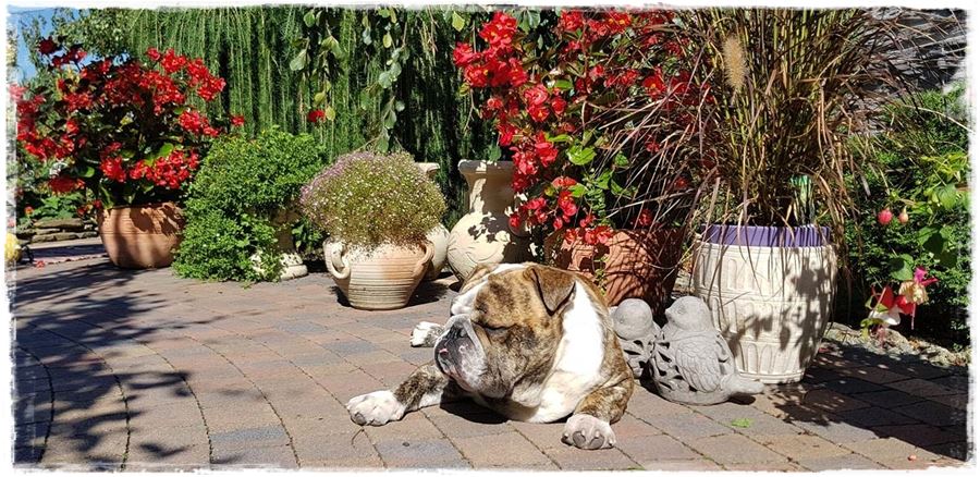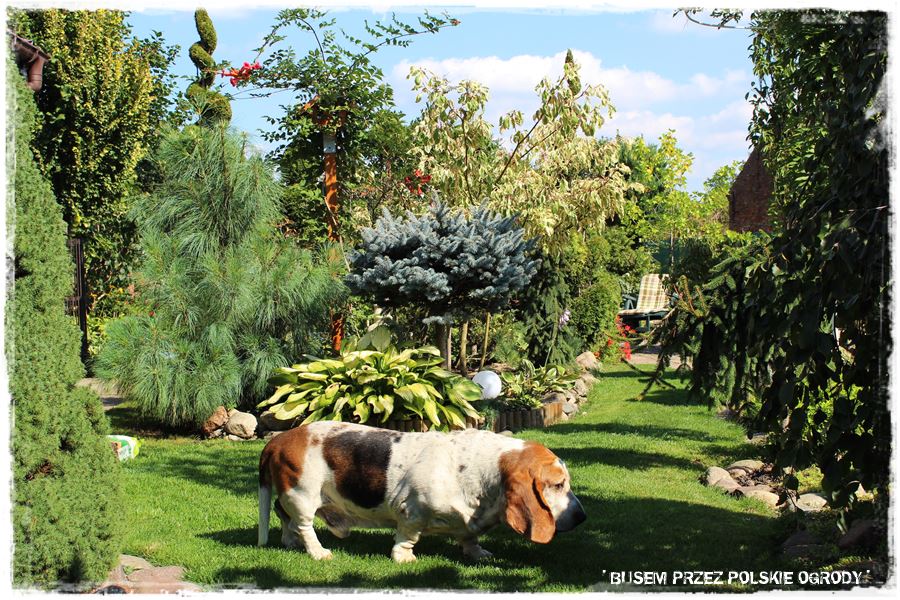 Natomiast szczególnym rodzajem dekoracji tego ogrodu są dwa oryginalne psy, baset i buldog angielski. Nie odstępowały mnie na krok.