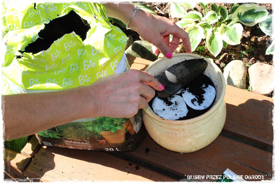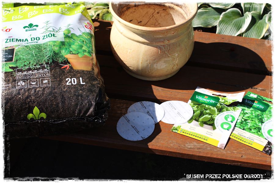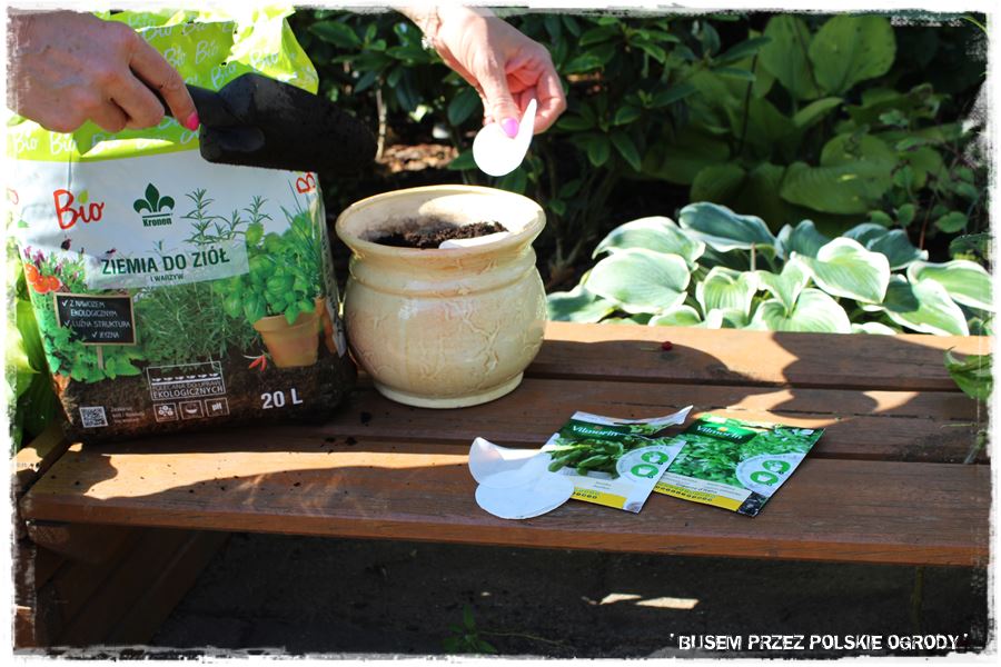 Jak w każdym z odwiedzonych ogrodów, tak i w tym przyszedł czas na wypróbowanie kilku produktów od Partnerów. Tak aby trochę się pobawić, a przy okazji zrobić coś pożytecznego, do tego na świeżym powietrzu i w ogrodzie. Wybraliśmy więc nasiona bazylii na krążkach, które posialiśmy w donicach, w sprawdzonym podłożu do ziół i warzyw.