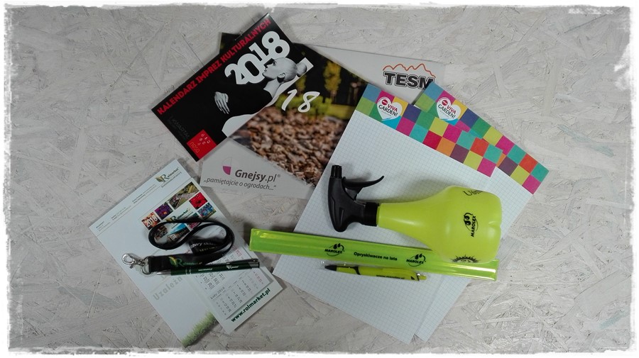 Od pozostałych Partnerów tj. Firmy Rolmarket.pl, Sherwin – Williams, Gnejsy.pl, Marolex oraz Gminy Nysa fajny, praktyczny zestaw gadżetów widoczny na zdjęciu: